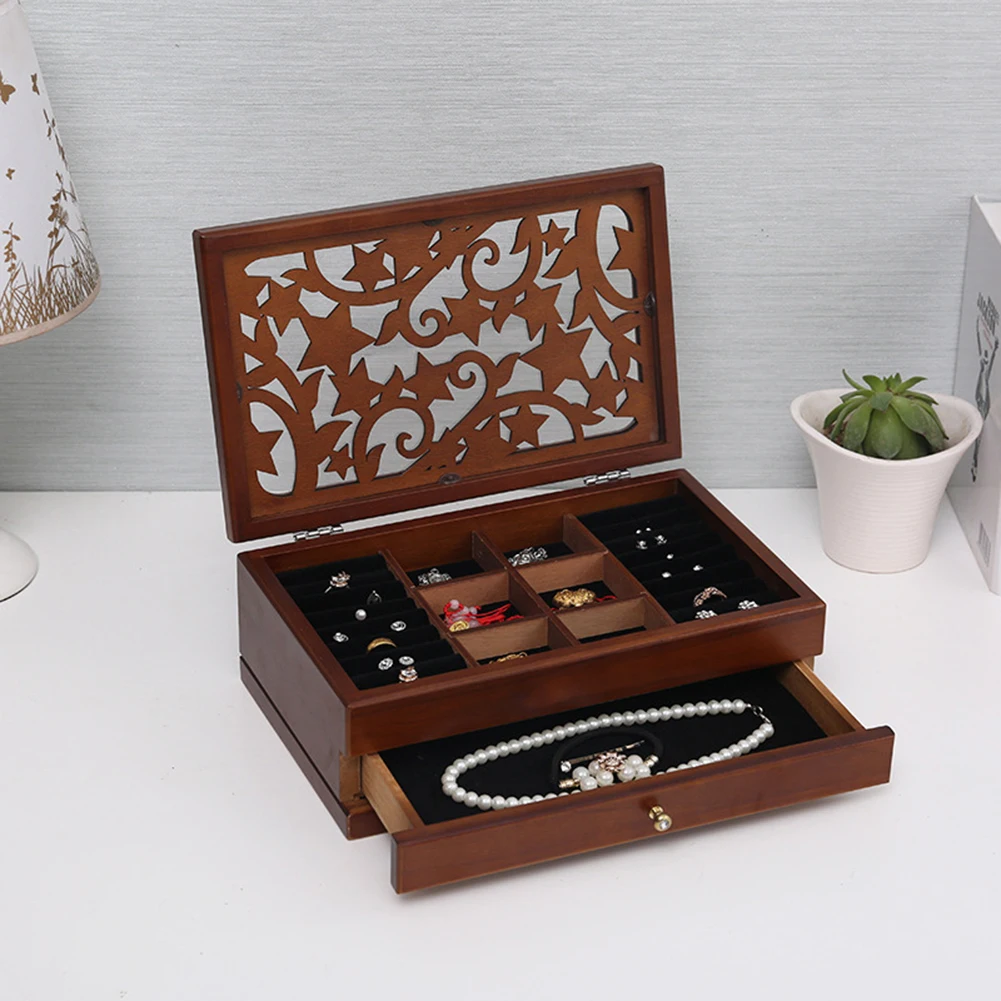 Многоуровневая большая 2-слойная деревянная шкатулка для ювелирных украшений, шкатулка для сережек, колец, органайзер для украшений, Подарочная коробка белого/коричневого цвета