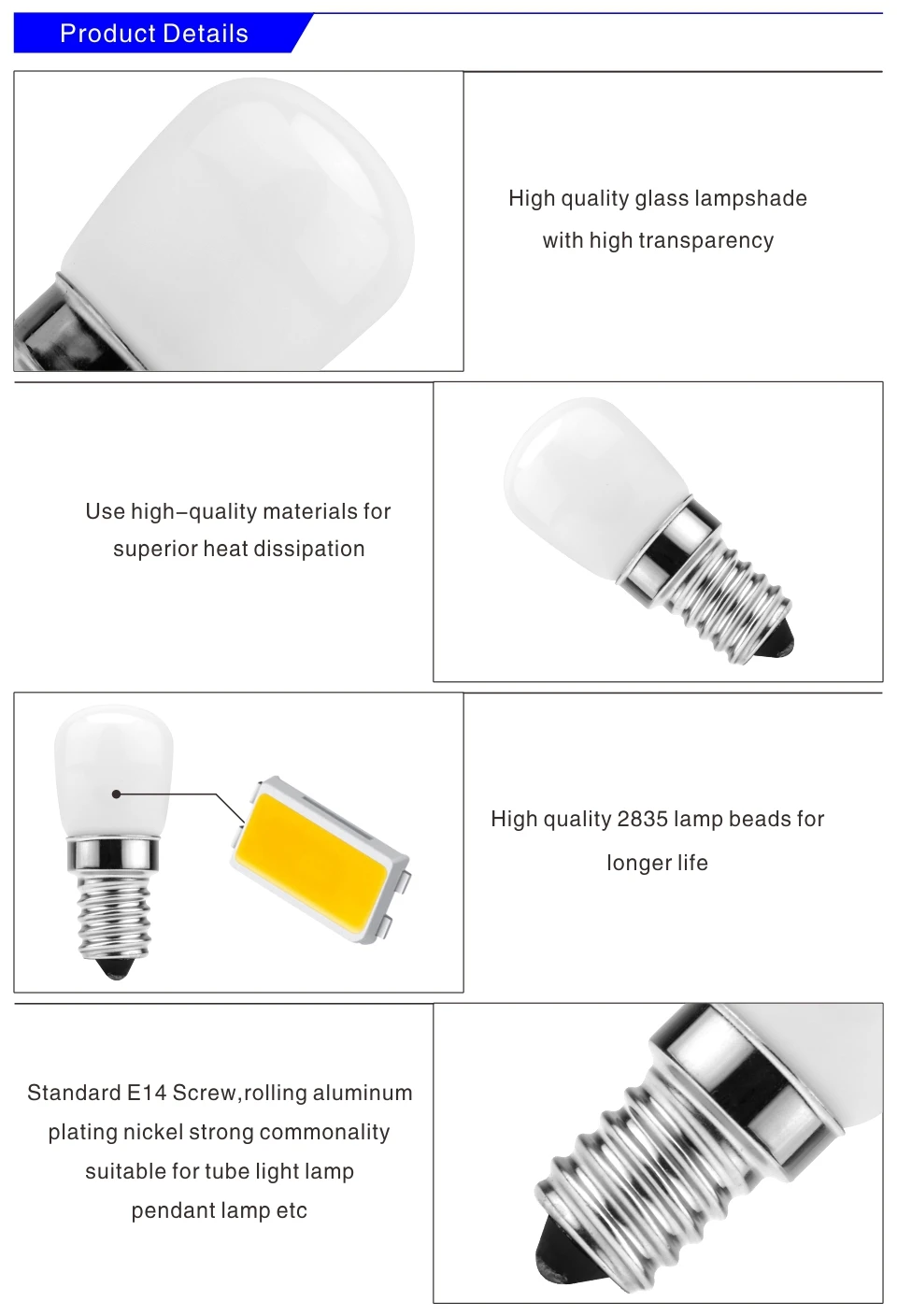 Светодиодный лампа для холодильника E14 3 Вт холодильник кукурузная лампа AC 220 В светодиодный светильник белый/теплый белый SMD2835 заменить галогенные люстры