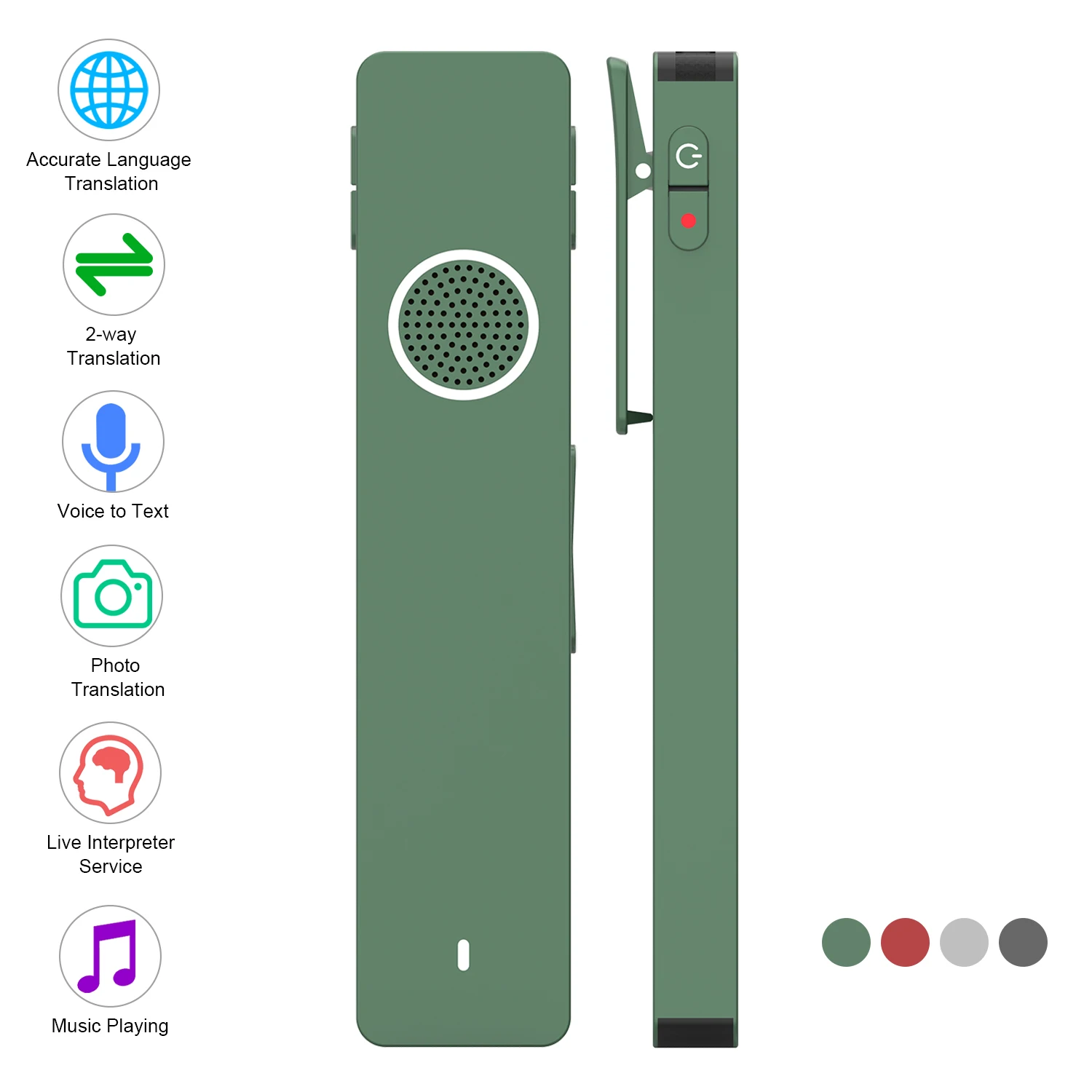 Простота в эксплуатации и управление одной кнопкой:Загрузите приложение (английская версия) и Подключите устройство к телефону через BT (Поддержка Android и iOS). Установите языки. Нажмите соответствующую кнопку, чтобы быстро начать перевод, запись или сервис переводчика в режиме реального времени. Нет необходимости переключать эти функции через приложение.