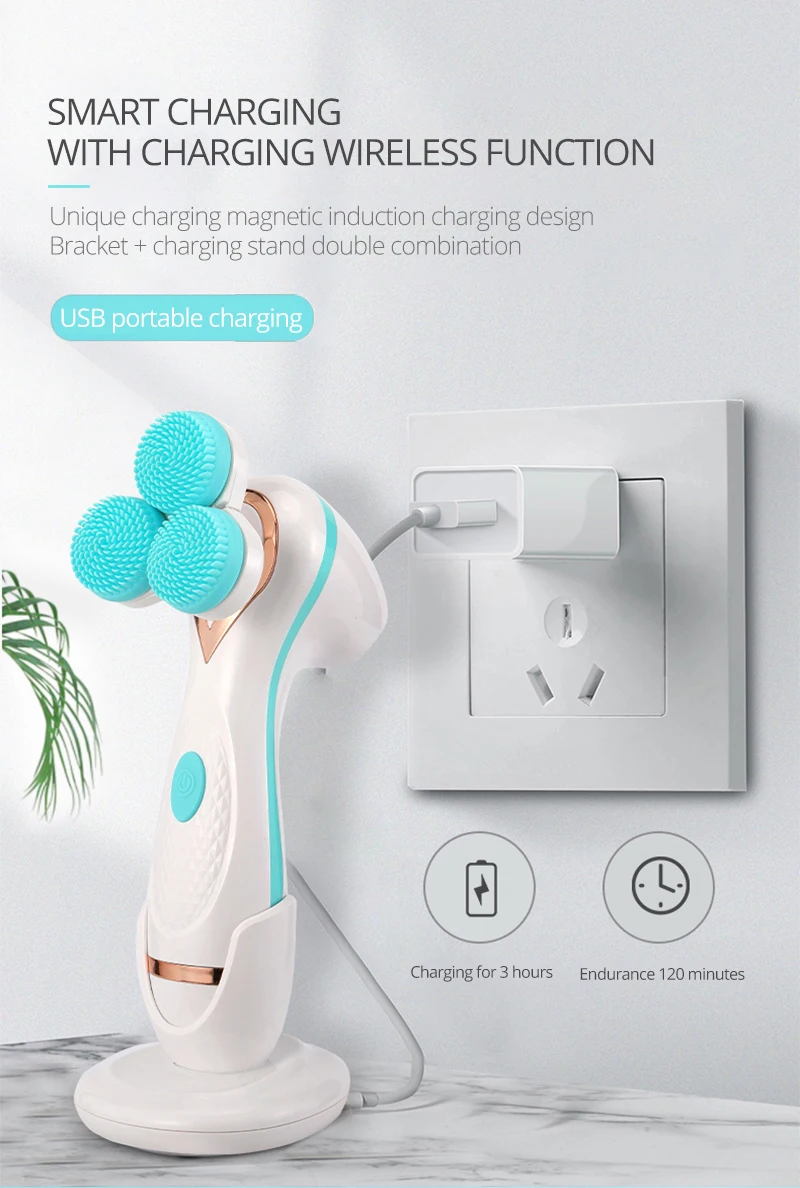 В наличии 2 головки кистей из силикагеля и 1 мягкая кисть DuPont. Каждая головка щетки имеет 3 независимых небольших головки щетки, которые вращаются независимо, чтобы сформировать 3 группы областей очистки, направленные на более глубокое очищение поверхности кожи грязи
