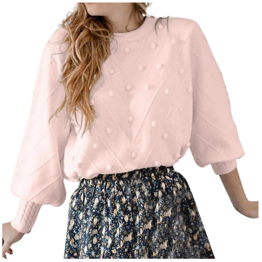 1. Особенности: повседневные топы-свитера, с длинными рукавами, с вязаными помпонами,Водолазка, свитер, топы, повседневные топы, повседневная одежда, стильный и модный дизайн, Осенние повседневные топы.