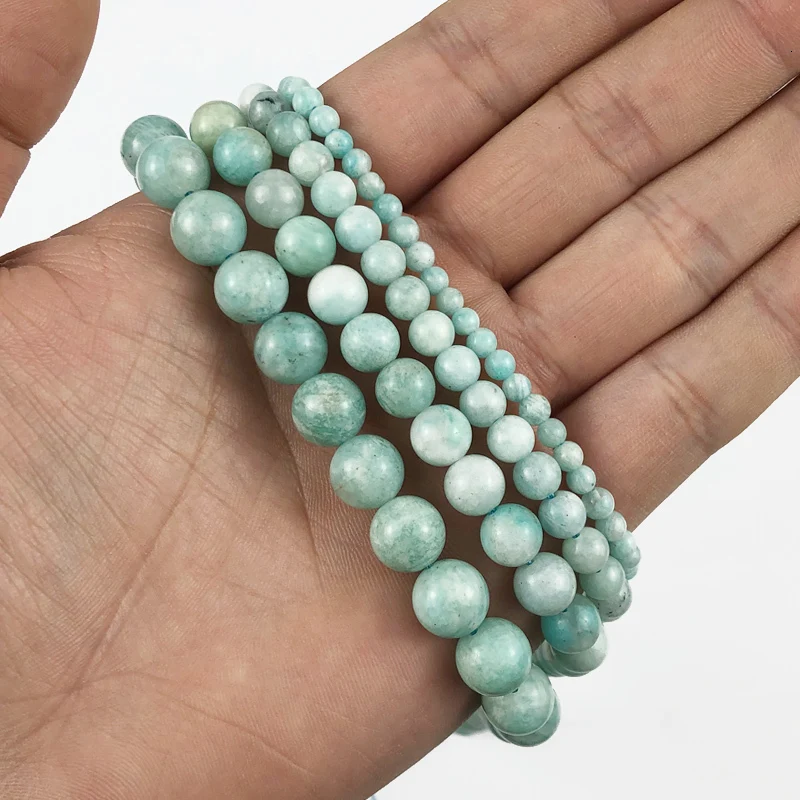 Перу Амазонит натуральный камень 4.6.8.10 мм Круглые прокладки бусины для ювелирных изделий Ожерелье Браслеты Изготовление DIY аксессуары Длина: 15,5 дюйма/нитка 4 мм: 95 шт.; 6 мм: 62 шт.; 8 мм: 46 шт.; 10 мм: 38 шт.;