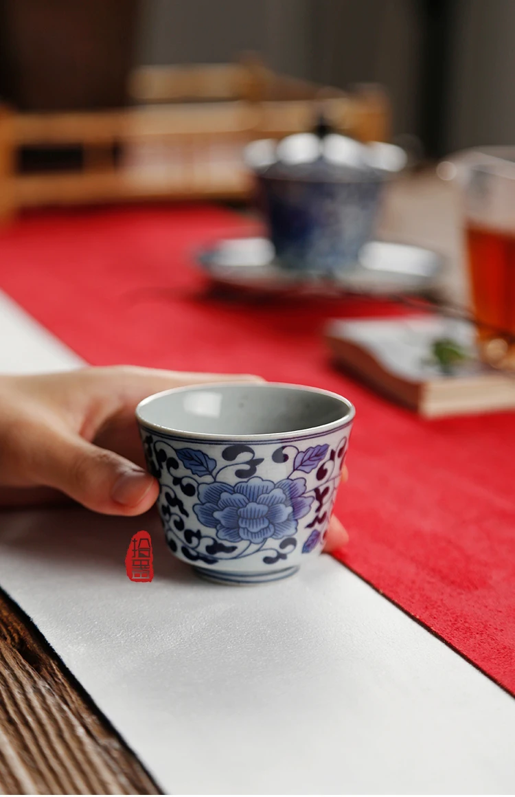 Ретро синяя и белая фарфоровая чашка, большая чайная чашка, чашка, одна чаша для чая, индивидуальная чашка, керамический чайный набор кунг-фу, чайный набор