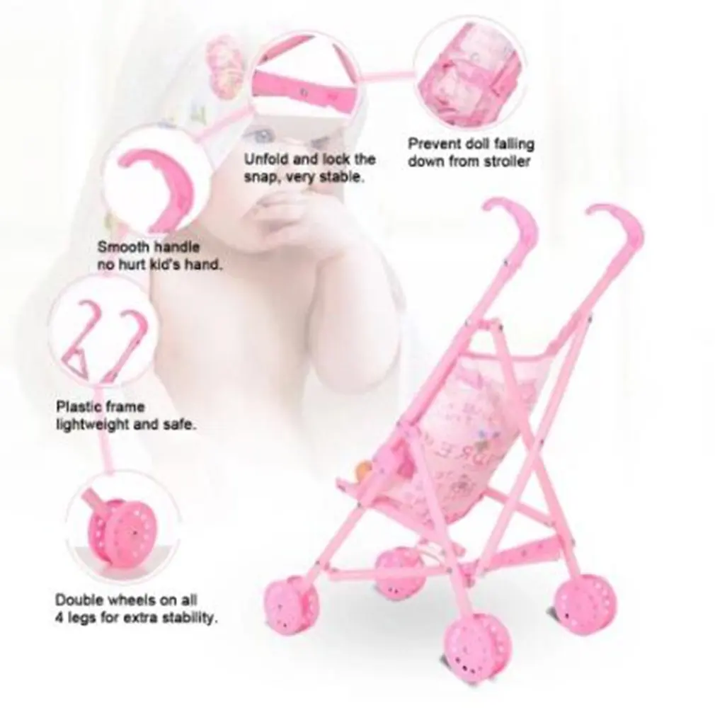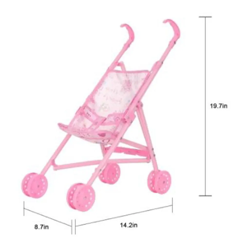 Baby Infant Doll Stroller Carriage Foldable With Doll For 12inch Doll Barbie Mini Stroller Toys Gift Pink