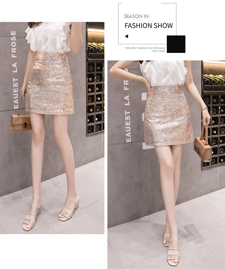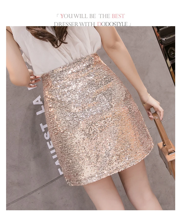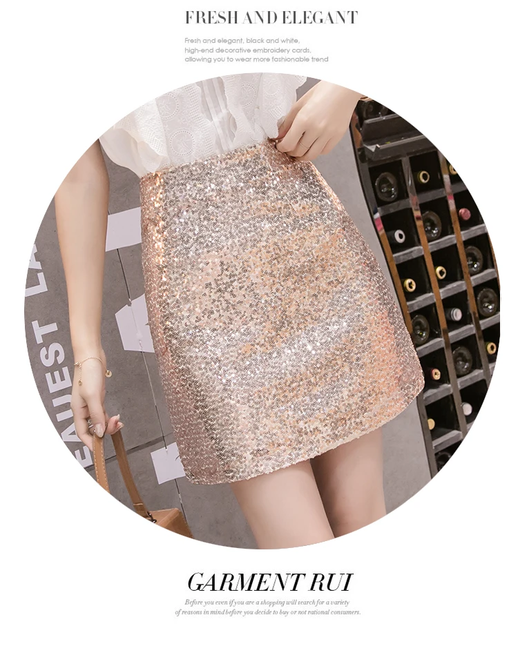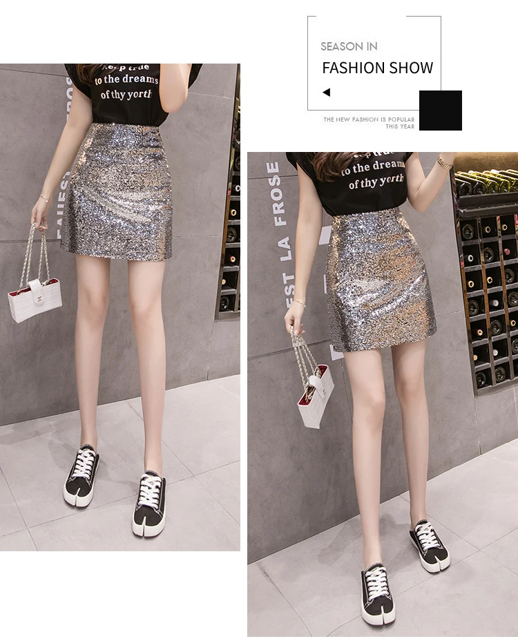 TingYiLi Sequin Skirt Black White Gold Short A-line Skirt Spring Summer High Waist Sexy Mini Skirts Womens