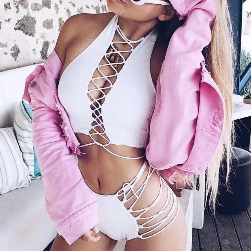 Женский купальник с завязками, черный или белый костюм для плавания, Дамский Монокини, купальный костюм, 2019
