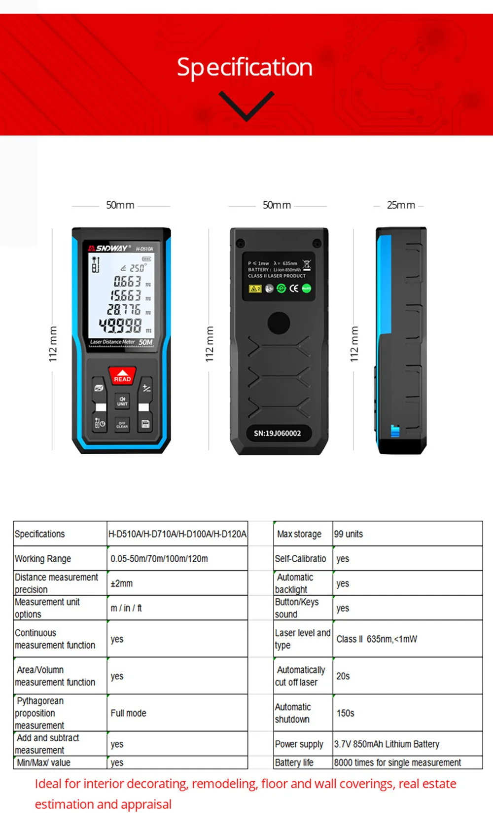 Лазер SNDWAY дальномер 50 м-120 м дальномер инструмент для измерения угла рулетка