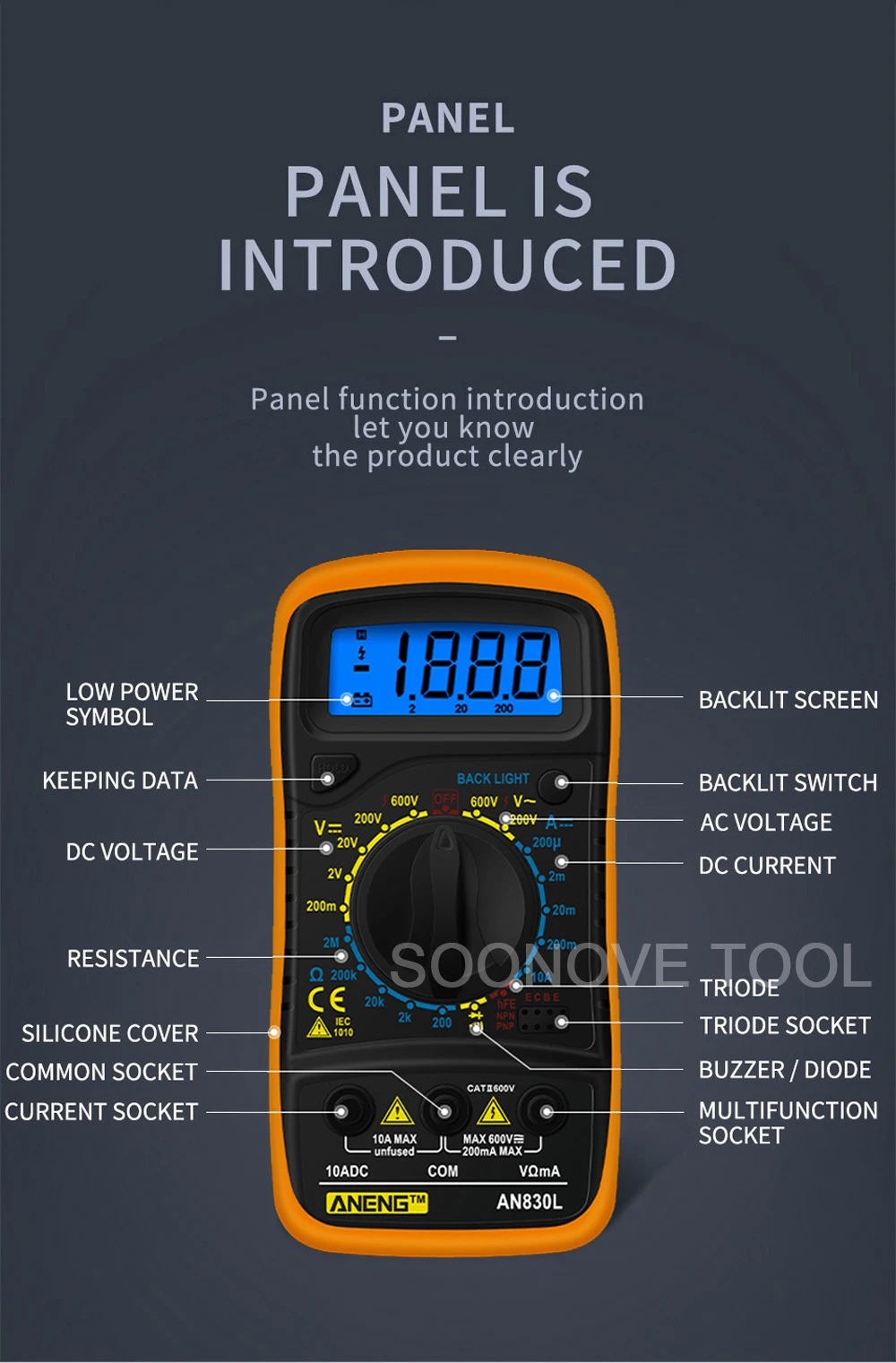 ANENG AN830L портативный Высокоточный Ручной цифровой дисплей мультиметр с ЖК-подсветкой AC/DC амперметр вольтметр тестер напряжения