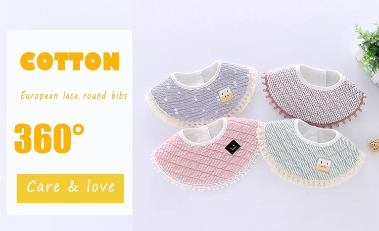 Baby bib double-layer cotton European lace round bib saliva towel feeding baby small cloth turban scarf for girl boy supplies