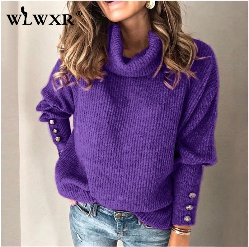 WLWXR Повседневный вязаный свитер в рубчик с высоким воротником, Женский пуловер на осень и зиму, зеленый свитер, женские рождественские Джемперы, женские топы