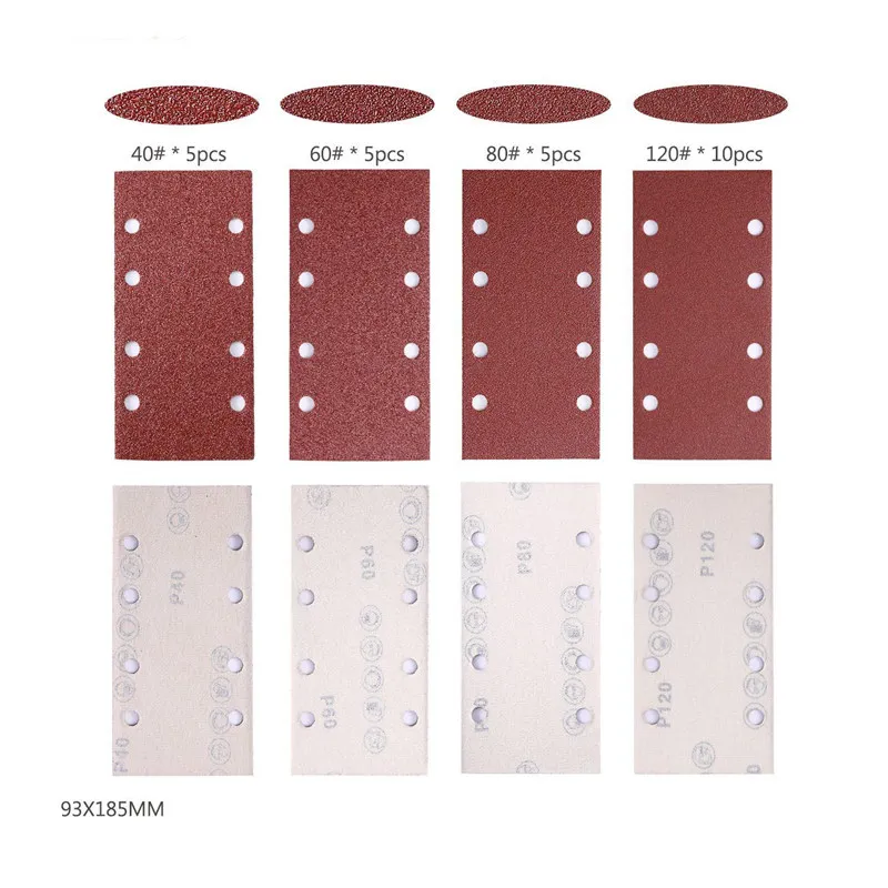 25 шт. шлифовальные колодки, шлифовальная бумага крюк и петля песка лист 93x185 мм с перфорацией; Обувь со шнуровкой 8 отверстий зернистость-40/60/80/120 Fit Лист ручная плоскошлифовальная машина
