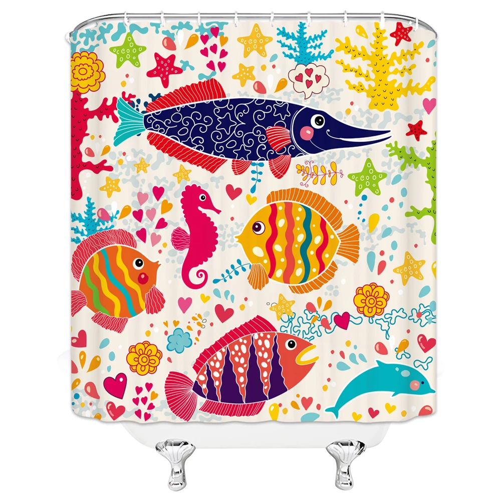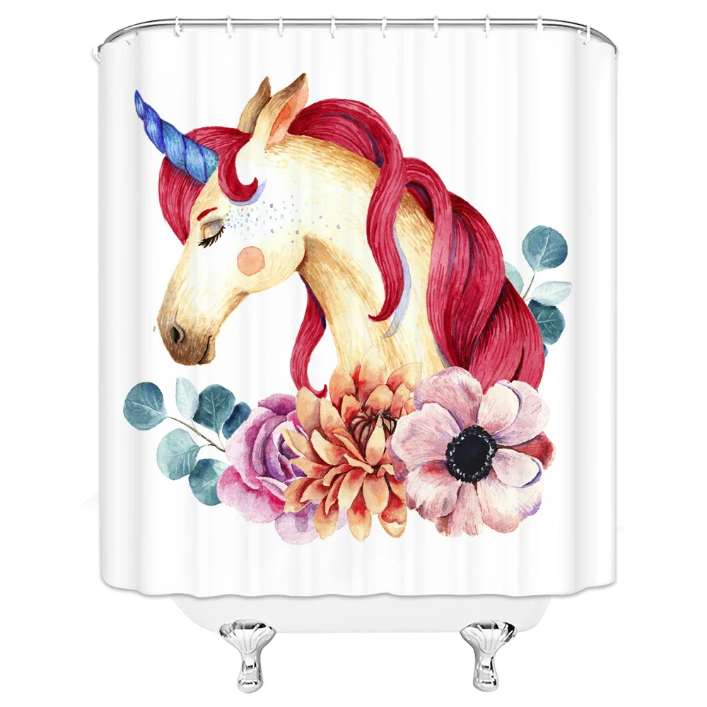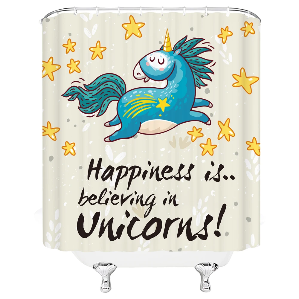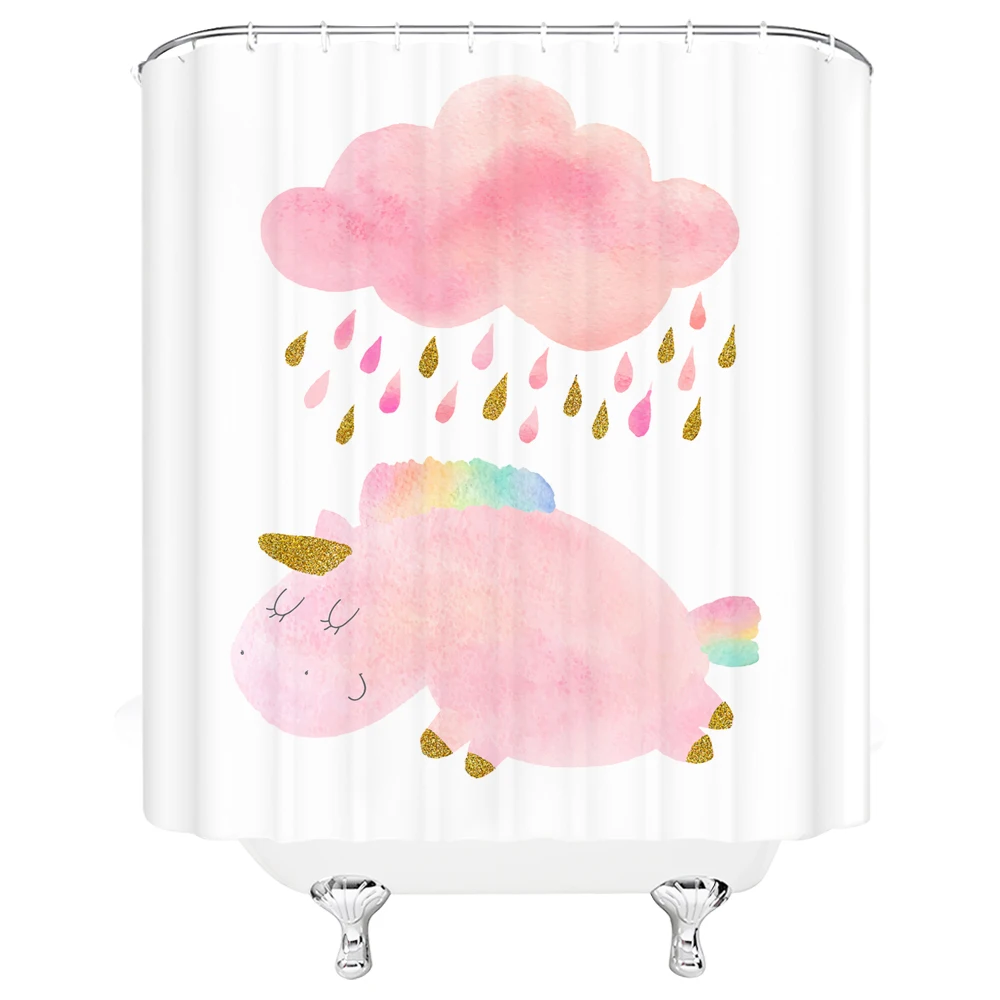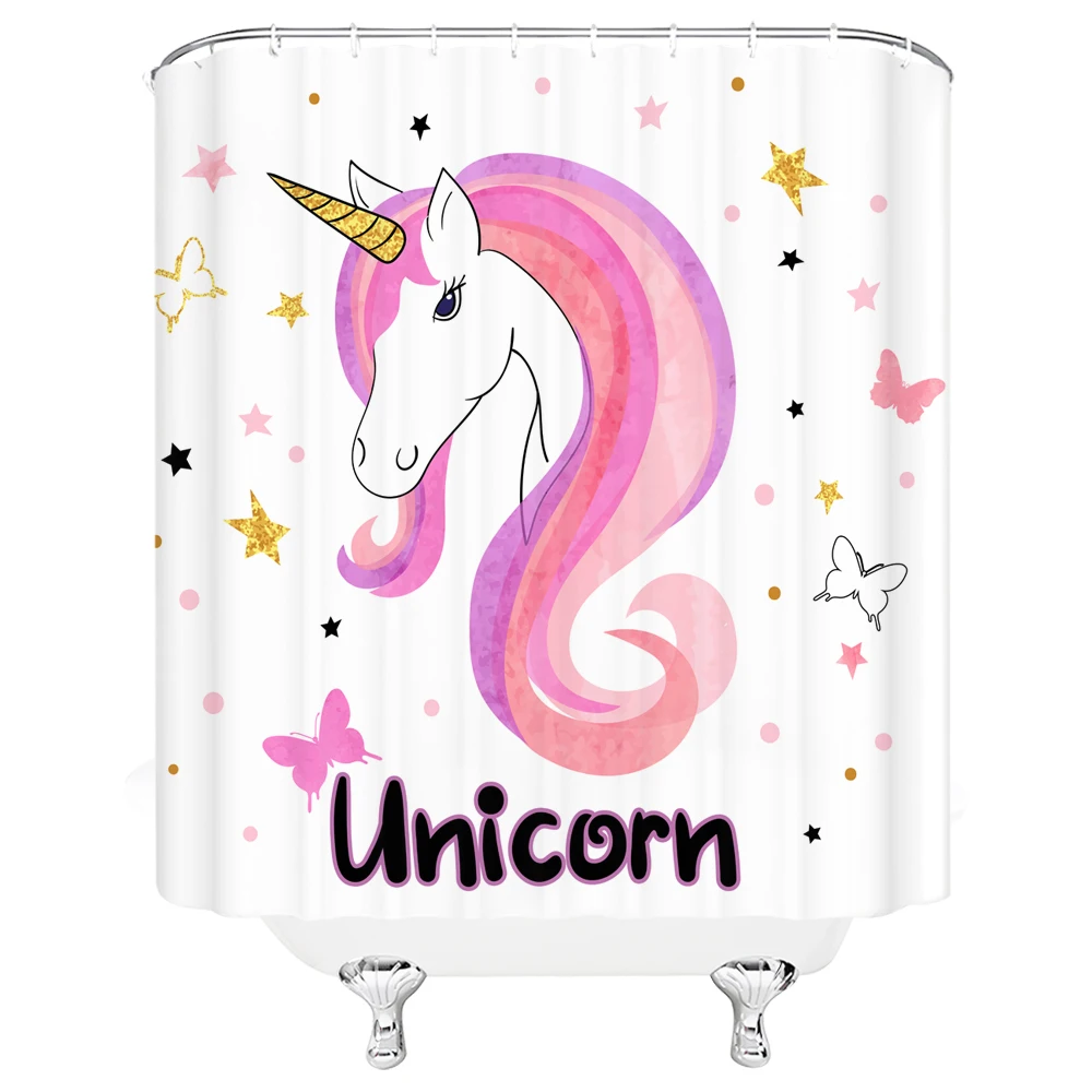 Занавески для душа с милым единорогом, занавески для ванны с мультяшным рисунком для девочек, водонепроницаемые занавески из полиэстера, занавески для ванной комнаты высокого качества