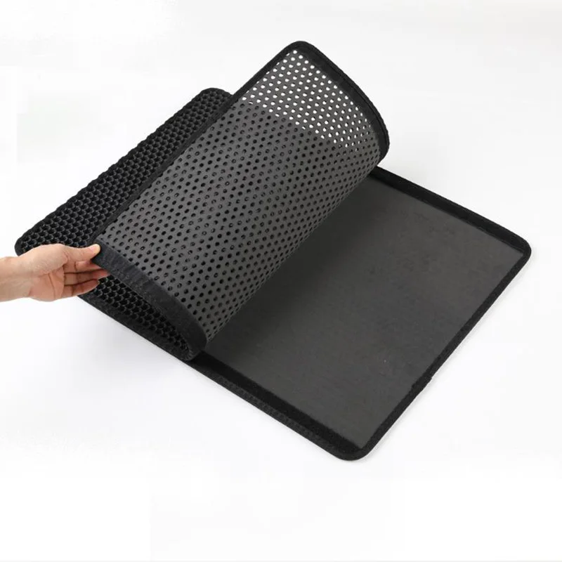 1. Изысканная стеганая кромка, толстая подошва, компактное качество изготовления, долговечное качество. 2. Водонепроницаемый базовый слой предотвращает протекание воды и мочи на пол. 3. Подходит для экологически чистых и высокоэластичных пенопласта EVA, соты для легкого сбора песков. 4. Двухслойный Траппер для кошачьих туалетов для улавливания мусора из кошачьих лап и ящика для мусора поможет вам сэкономить время очистки и стоимость песков. 5. Легко чистить, просто вылейте мусор через открывающийся карман.
