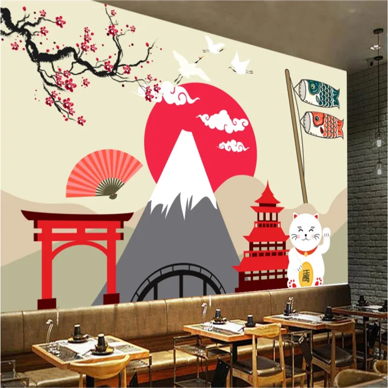 Ручная роспись Япония Знаменитые Достопримечательности настенная бумага 3D кимоно красота японская кухня суши Ресторан промышленный Декор настенная бумага