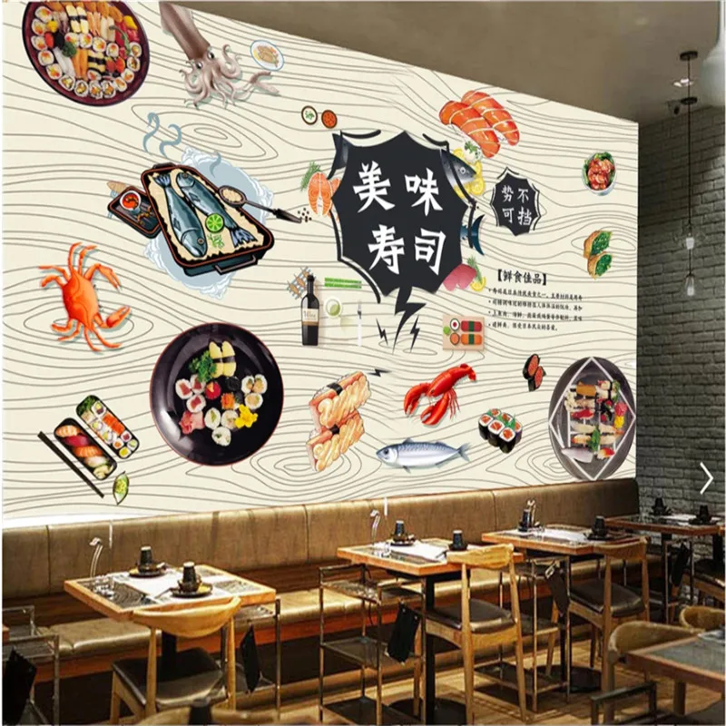 Пользовательские японские кухни Суши Ресторан обои 3D снэк-бар промышленный Декор Фон настенная бумага Papel де Parede 3d
