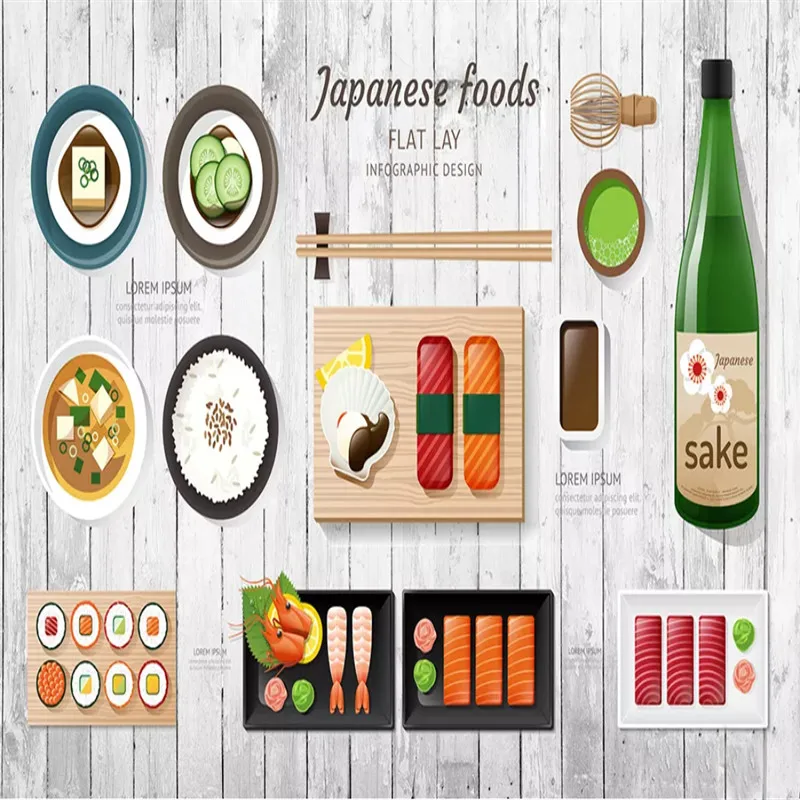 Пользовательские японской кухни Саке лосося обои 3D суши Ресторан Izakaya снэк-бар промышленный Декор Фон настенная бумага