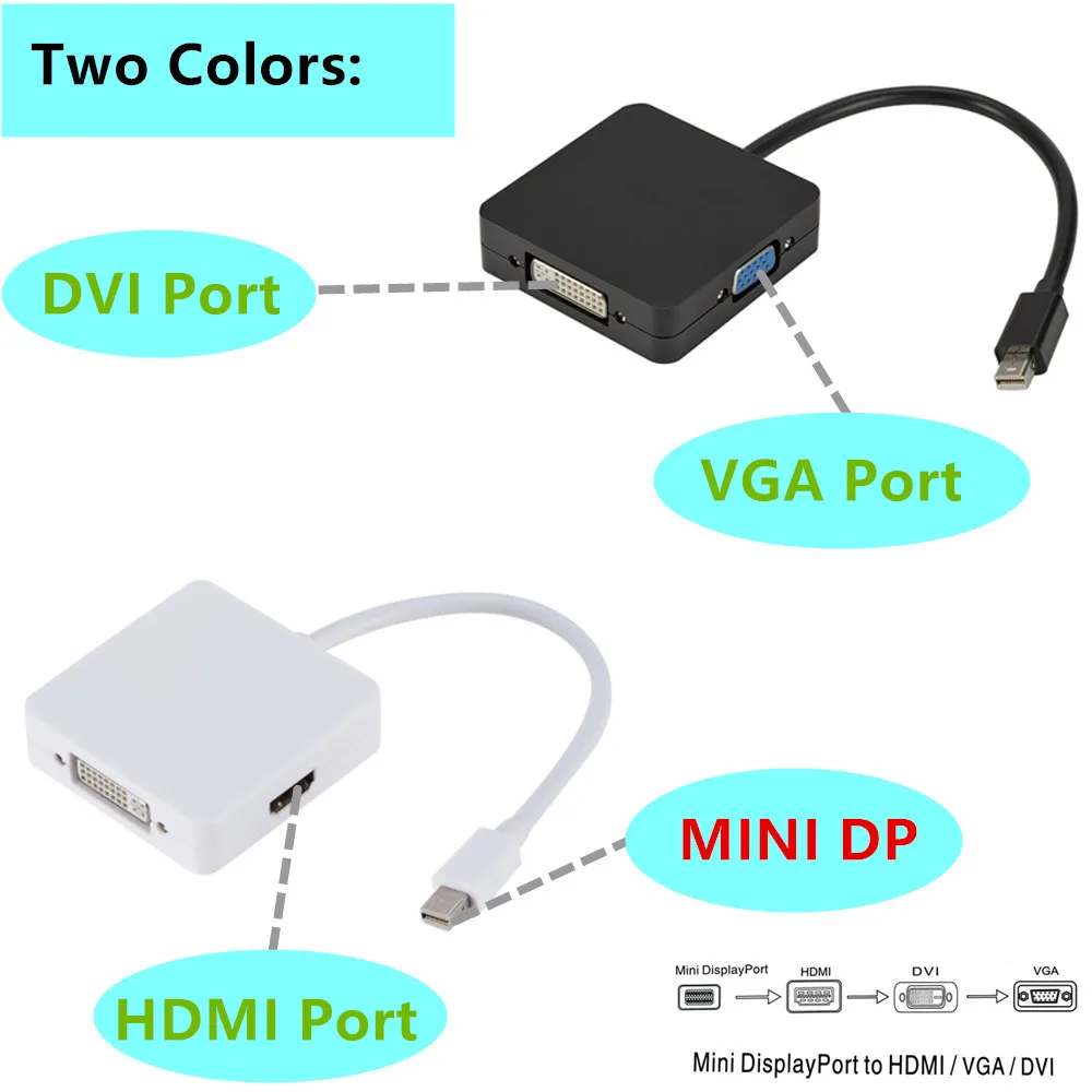 Особенности: Sup порт мини-дисплей порт 1.1a двухрежимный вход. HDMI может поддерживать аудиовыход Для iMac (конец 2009) и Mac Book Pro (Mid 2010) Поддержка HDMI/DVI/VGA выход с максимальным разрешением 1920x1080p @ 60 Гц, 225 МГц/2,25 Гбит/с на канал (6,75 Гбит/с все каналы),12 бит на канал (36 бит все каналы) глубокий цвет. Автоматическое обнаружение дисплея путем подключения и отключения. Питание от источника порта мини-дисплея. Два типа: смешанный цвет, одинаковая функция. Случайная Доставка. Характеристики: Размеры: 5,9x5,9x1,5 см Длина кабеля адаптера: 18 см Цвет: белый и черный Входной сигнал: мини-порт 1.1a Выходное видео: HDMI/DVI/VGA Вход: мини-display Port Male 20pin Выход: HDMI Женский Тип A 19pin Разъем: DVI Female (24 + 1) VGA Female 15pin Вертикальный диапазон частот: 50/60 Гц Полоса пропускания усилителя видео: 2,25 Гбит/с/225 МГц HDMI/DVI/VGA:480i/480p,576p,720p,1080i/1080p Внешний источник питания: внешний источник питания не требуется Потребляемая мощность (макс.):700 мВт Посылка включает: 1*3 в 1 mini DisplayPort to DVI VGA HDMI адаптер