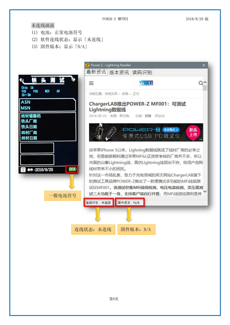Интерфейс тестирования провода Lightning. Этот интерфейс может отображать Тип серийного номера аутентификации заголовка Lightning, Тип чипа аутентификации, чип коммутатора, оценку и другую информацию.