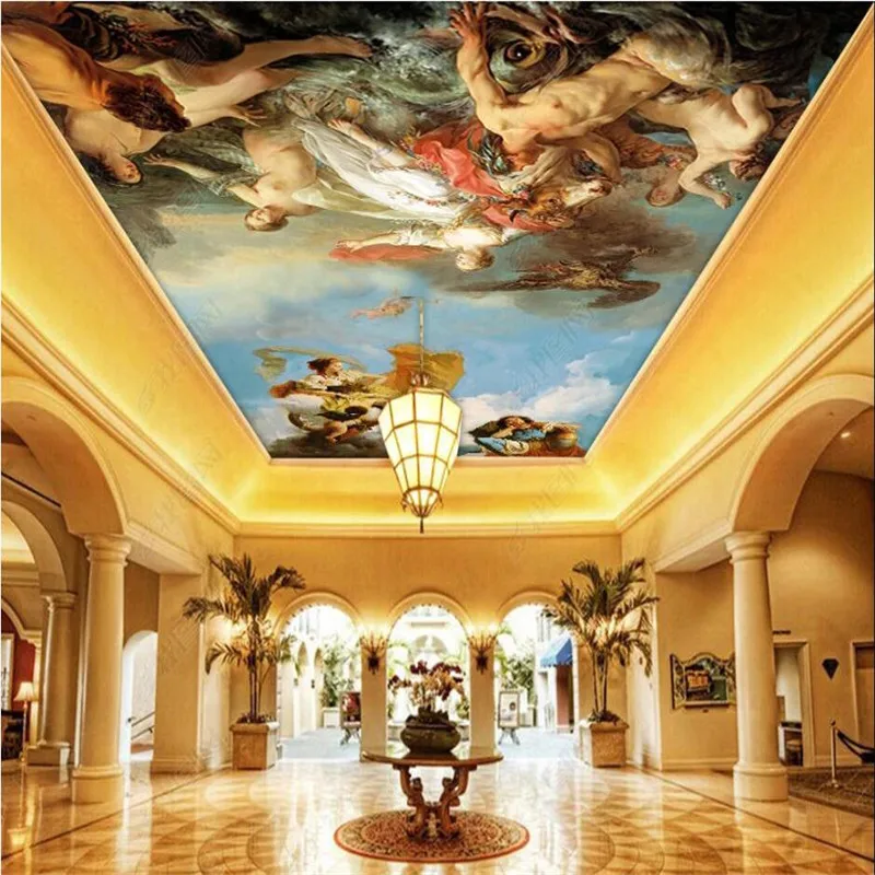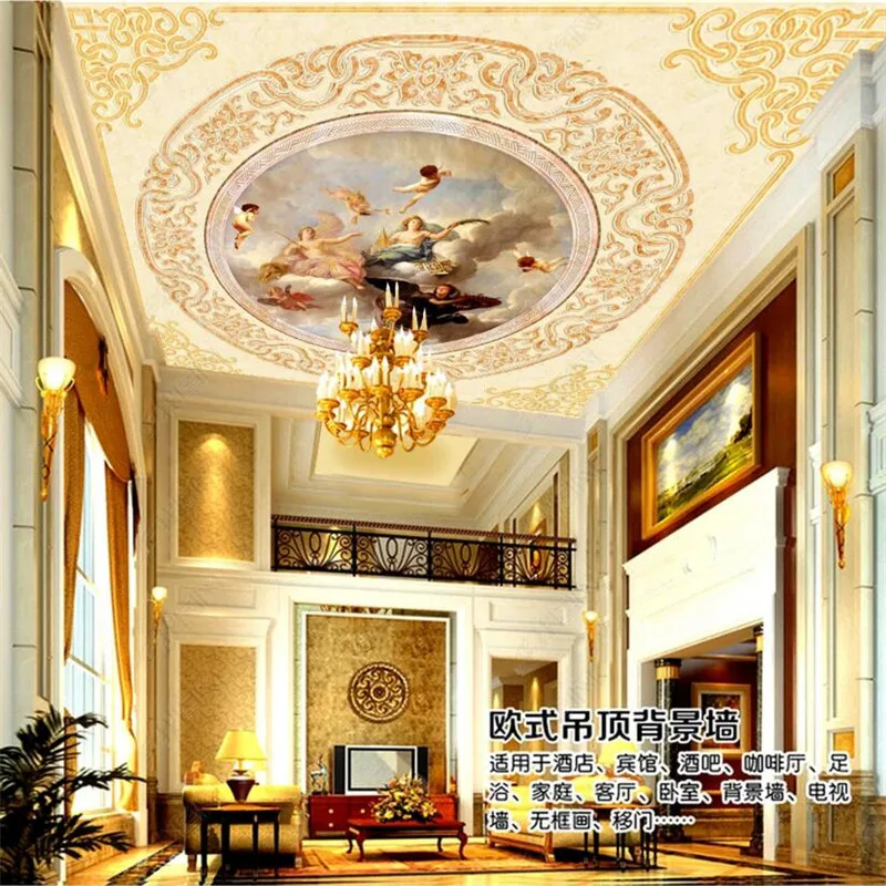 Пользовательские европейские ангелы потолок настенная бумага для отеля дома улучшение стены 3D гостиная фон Декор настенная бумага 3D