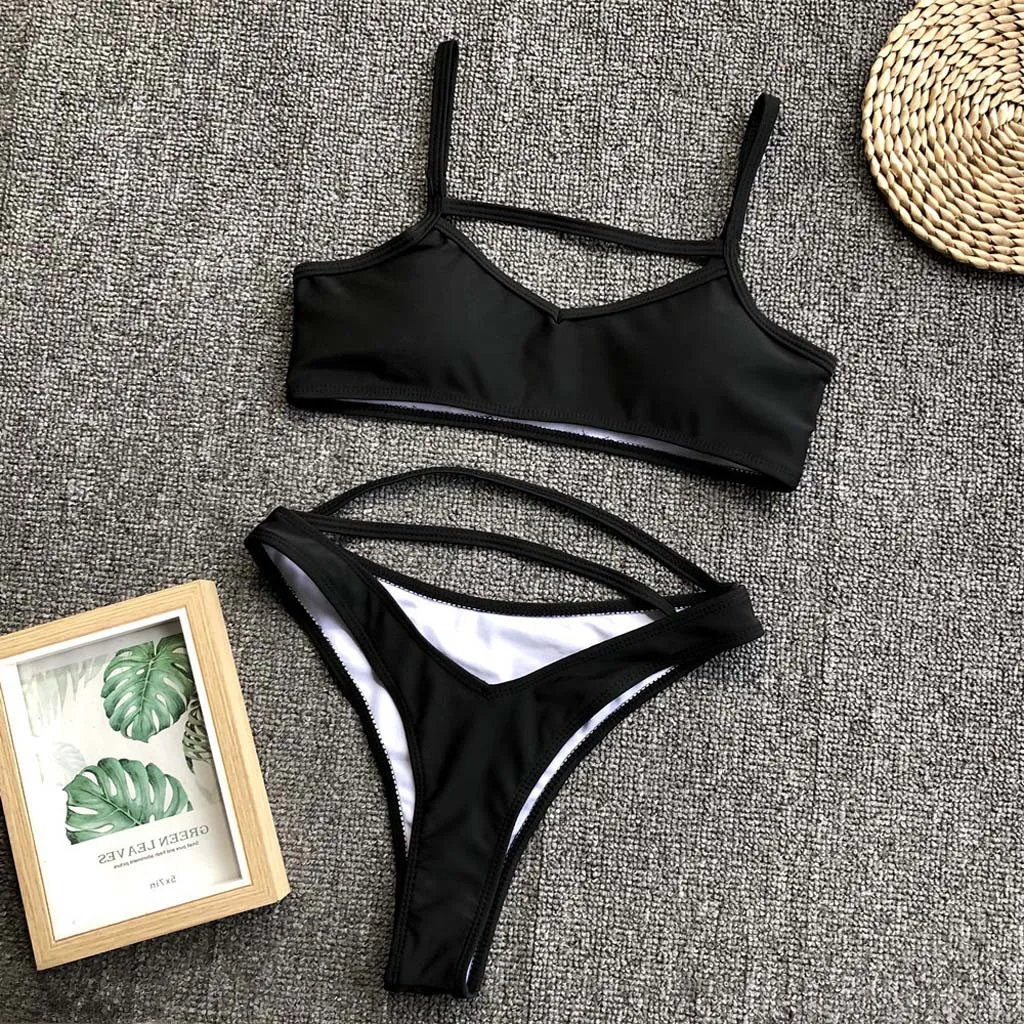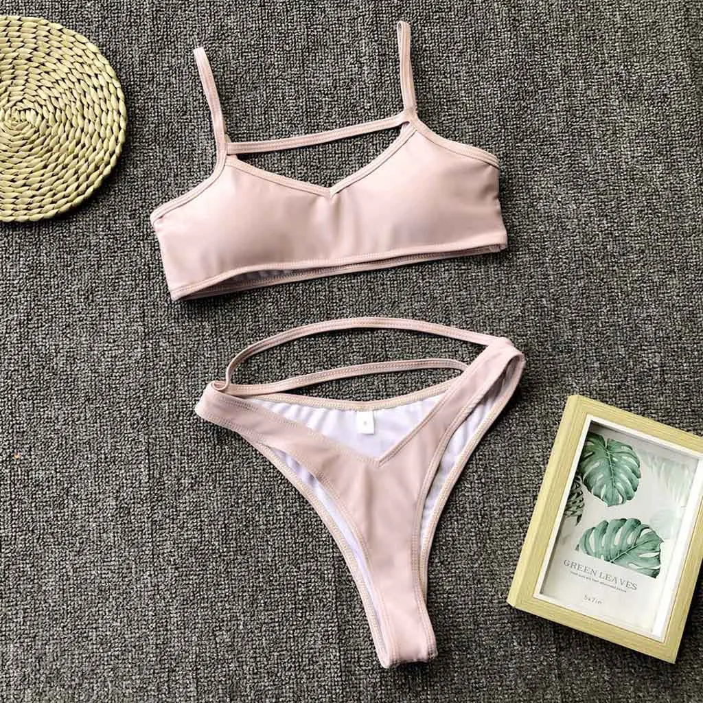 Женский купальник, Одноцветный бикини, 2020, купальник, сексуальный, пуш-ап, микро бикини, набор, для плавания, для купанияGСтрока One Piece костюмы бразильская пляжная одежда