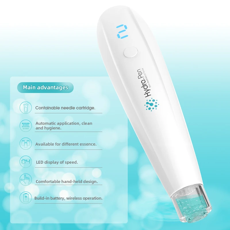Hydrapen H2-это новое устройство для ухода за кожей. Он оснащен контейнерным игольчатым картриджем, эссенция автоматически проникает в кожу, делая движение МТС, что значительно повышает эффективность и эффект лечения кожи. Автоматический аппликатор сыворотки с 2 картриджами 1. Контейнерный игольчатый картридж. 2. Автоматическое нанесение, чистка и гигиена 3. Доступны для различных эссенций 4. Светодиодный дисплей скорости 5. Удобный ручной дизайн 6. uild-in аккумулятор, беспроводная работа Используйте Лучший необходимый инструмент Наша ручка микроиглы является лучшим средством для ухода за кожей лица для начинающих и профессионалов, просто посмотрите на эти удивительные преимущества: 1. Увеличивает поглощение средств по уходу за кожей лица до более 500%, максимизируя их эффективность 2. Увеличьте естественное свечение 3. Создает здоровый цвет лица 4. Улучшает тон и текстуру кожи 5, открывает поры, позволяя коже