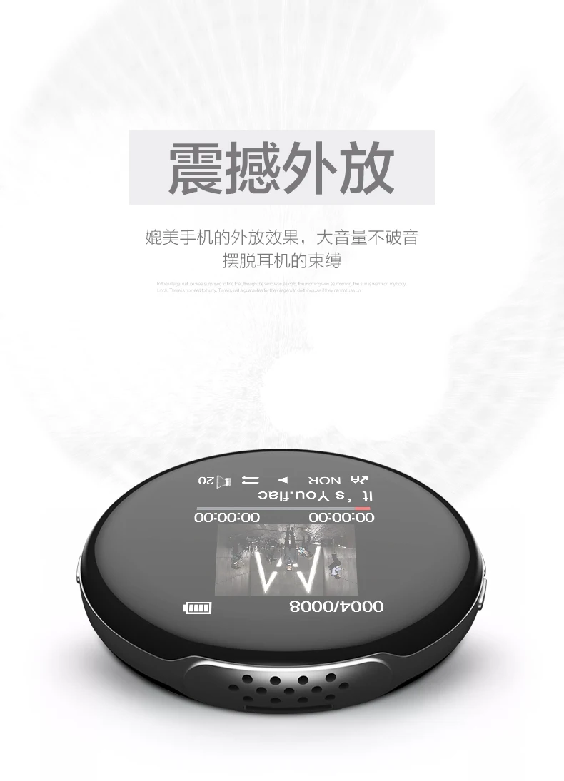 Материал: цинковый сплав + пластмасса Цвет: черный, красный Материал»Зеркальная поверхность:Полуфабрикат PC прозрачный материал, готовое вакуумное покрытие полупрозрачный Емкость 8 ГБ/16 ГБ Размер экрана: 1,44 дюймов TFT цветной экран, разрешение 128*128 Размер продукта/вес (Справочное значение); Диаметр/толщина 55 мм * 13,5 мм Вес; 38 г Формат музыки: MP3/WMA/APE/FLAC/WAV Версия Bluetooth: Bluetooth 4,0 Динамик: со встроенным динамиком Расстояние подключения по Bluetooth: расстояние прямой линии составляет около 10 метров Формат видео: AMV/AVI Формат записи: WAV/MP3 Запись расстояние: Расстояние прямой линии составляет около 3 м Микрофон: Встроенный микрофон один микрофон Формат текста: LRC формат Формат электронной книги: Формат TXT Поддержка изображений; Формат JPG BMP Совместимые системы: XP (Home, Pro, с SP1, SP2, SP3), 32 бит/Windows 7 -- 10 64 бит Подключение к USB: USB.2.0 Характеристики наушников: Поддержка нормальных трехсекционных/четырехсекционных наушников и поддержка наушников с сопротивлением 16Ʊ or 32 Ʊ Встроенный аккумулятор: литий-ионный Ёмкость 320ma Время зарядки: около 2 часа Время воспроизведения (время работы может иметь разницу, время тестирования музыки-это время после заставки черного экрана , И это время, пожалуйста, обратитесь к фактическому времени игры . ): Музыка: через вставные наушники: около 24 часов; через динамик: около 8 часов, Видео: через наушники: около 7,5 часов; через динамик: около 4,5 часов Радио: около 15 часов Запись: около 38 часов Через Bluetooth для воспроизведения музыки: около 9 часов Основные функции: музыка, видео, запись, радио, картинка, электронная книга, Bluetooth и так далее Язык поддержки: английский, русский и другие около 26 языков