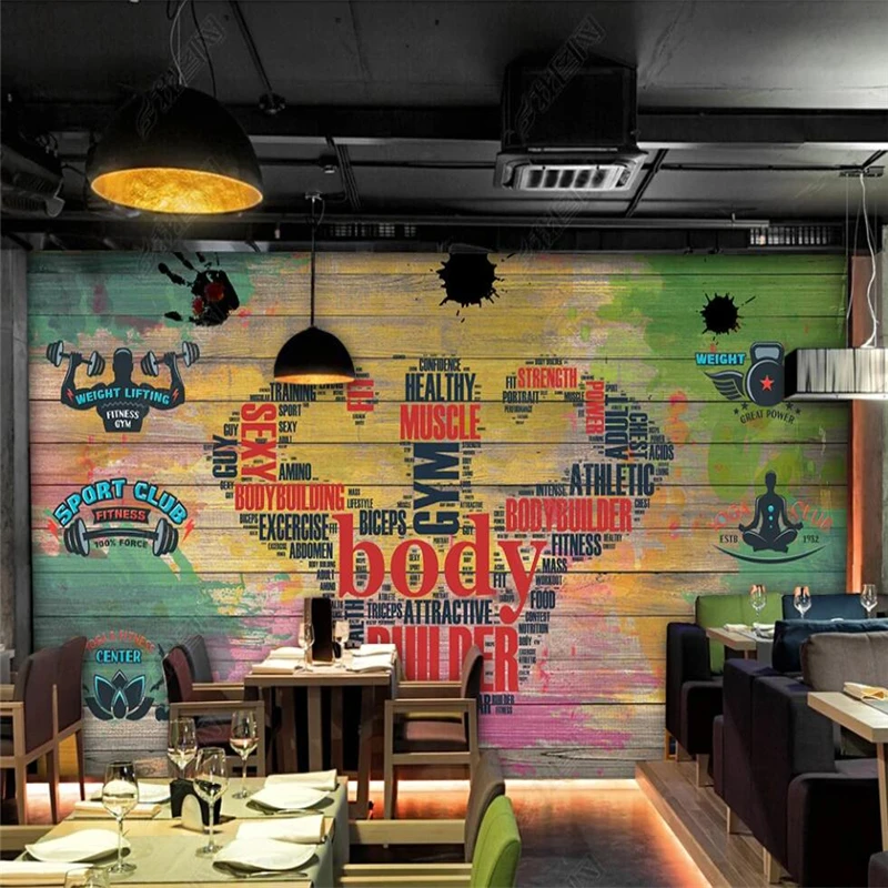 Обои для занятий тяжелой атлетикой, тренажерного зала, деревянные доски, модные граффити, фитнес-клуб, Ресторан, Бар, декоративный фон, Настенная роспись, обои