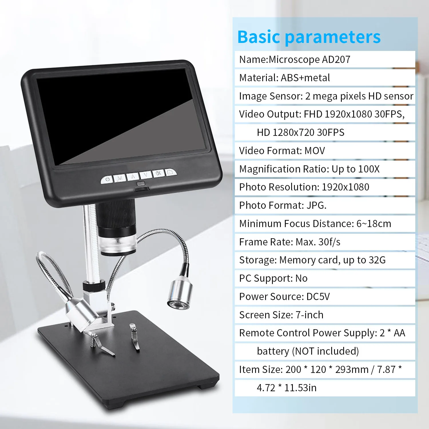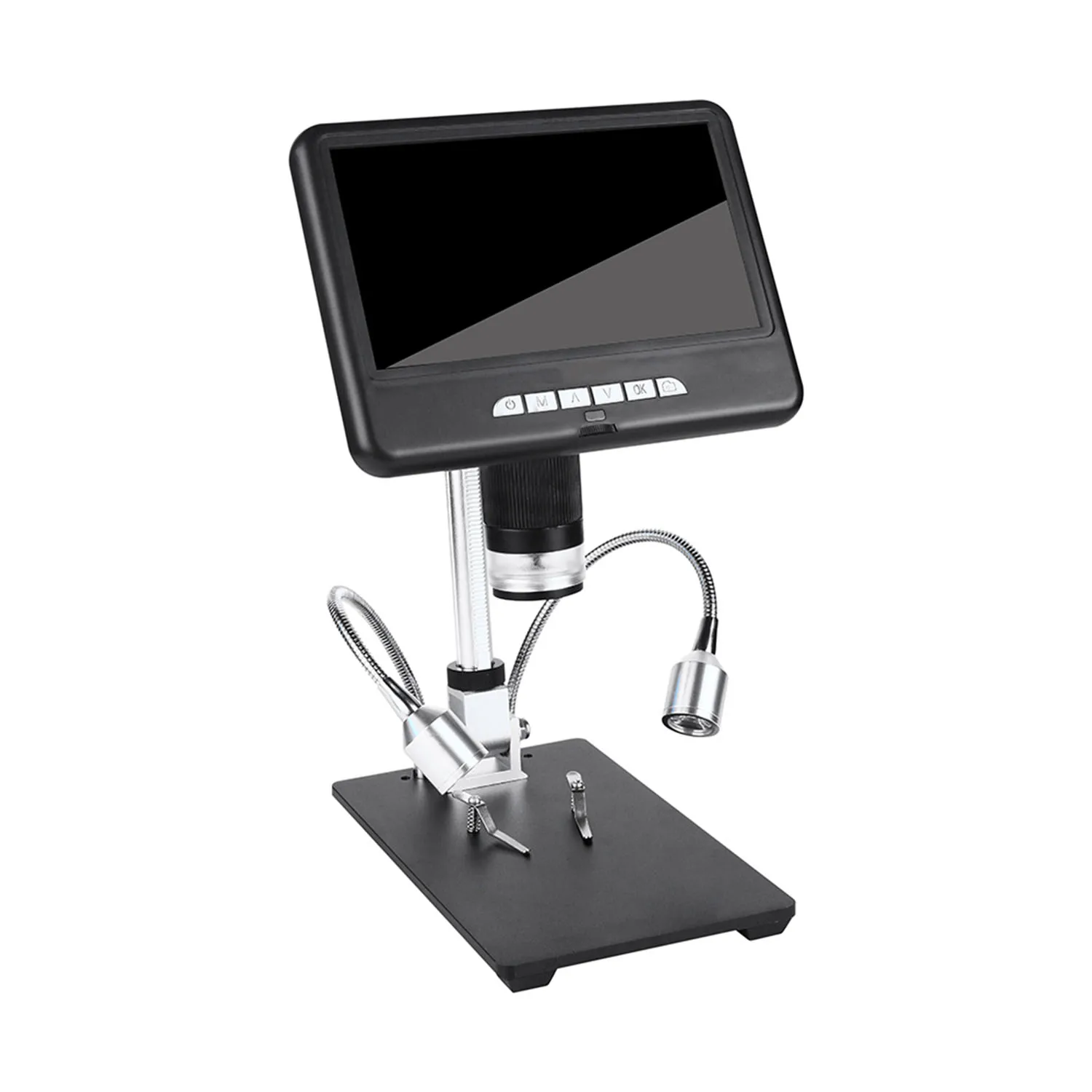 Основание подставки: однотонное черное металлическое основание достаточно прочное, чтобы обеспечить стабильное крепление на столешнице. Объект наблюдения может быть установлен на гладкой плоской подставке для работы без рук.