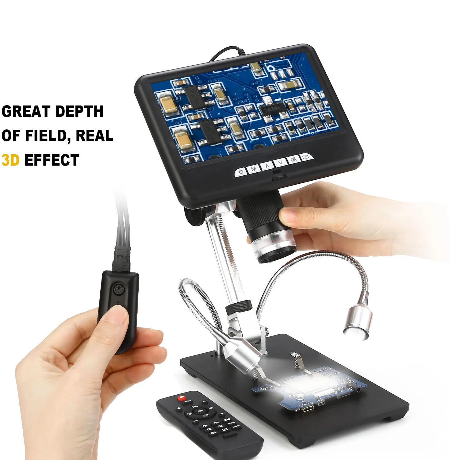 Дистанционное управление: оснащено пультом дистанционного управления, удобно управлять с помощью этого маленького блока, например, регулировать яркость, масштабирование, резкость вверх/вниз, контрастность вверх/вниз, вращение изображения, И многое другое.