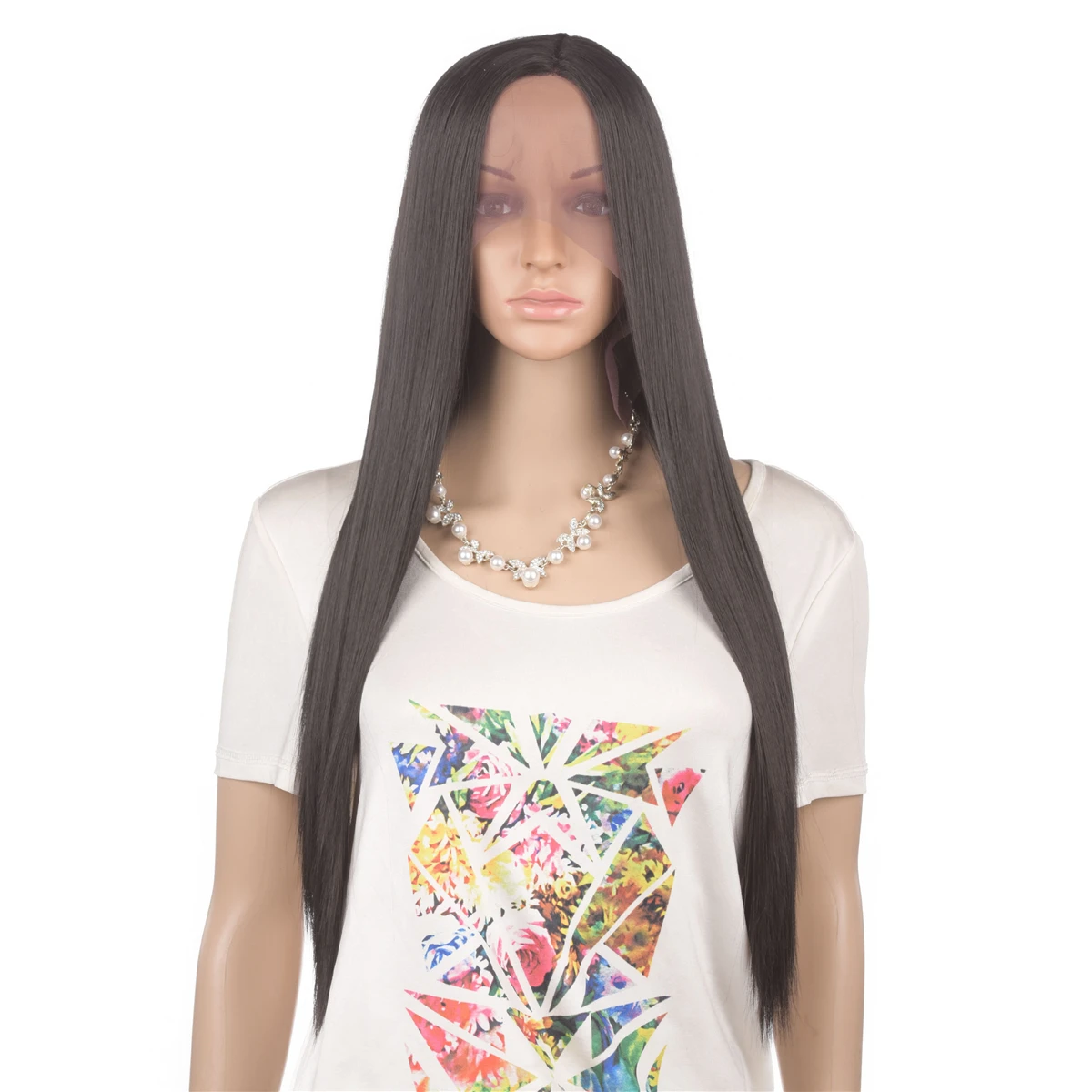 Наименование товара: длинный прямой кружевной передний парик средней длины, ручная вязка