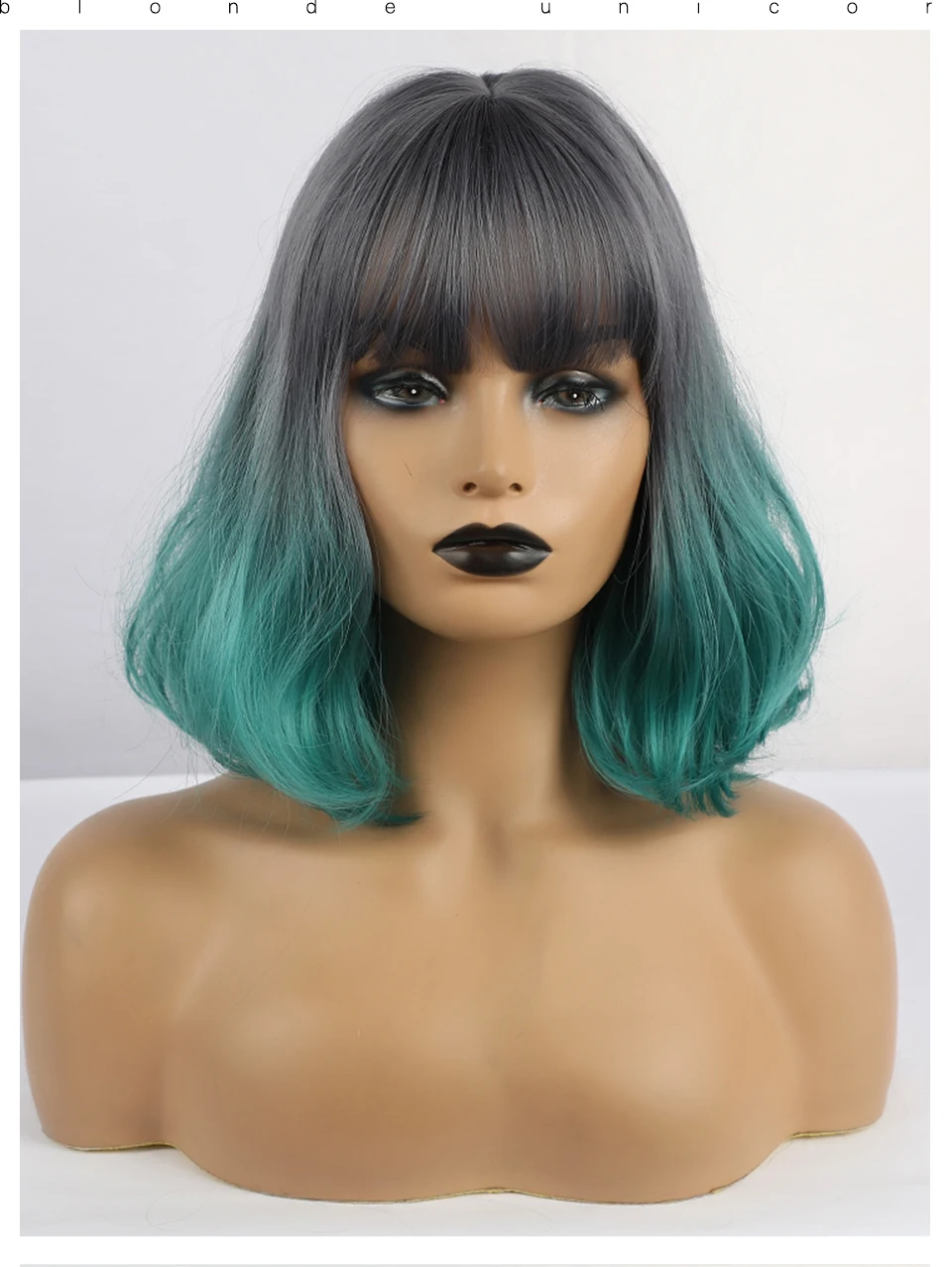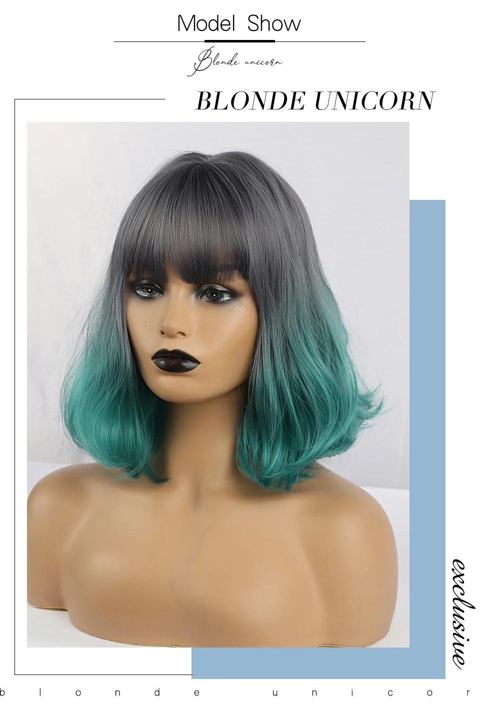 Блондинка Единорог синтетический серый Омбре зеленый 12 дюймов Короткие Волнистые Боб парики косплей парик для женщин высокая температура волокна 9 цветов