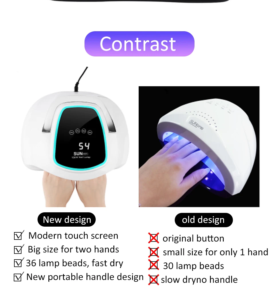 Тип: 2020 новейшая СВЕТОДИОДНАЯ УФ лампа для ногтей Лампа из бисера: 36 шт. Напряжение: 110 В (вилка стандарта США) 240 в (вилка стандарта ЕС) Партномер: BQ6T Сертификат: CE продукты G.W: 882g Мощность: 120 Вт Страна происхождения: Гуанчжоу, Китай Время лечения: 10 s/30 s/60 s/99 s цвет: белый Размер продукта: 28,5*22,6*11,8 см Функция: 10 s быстрая сушка/высокая мощность Применение: маникюрный салон, маникюрный салон, самостоятельное использование, маникюрный спа или обучение и т. д. Особенности: ЖК-дисплей Дисплей Легко моется Портативный ручка дизайн Двойной светильник источник Современный Сенсорный экран Интеллигентая (ый) Сенсор Большое пространство для двух рук