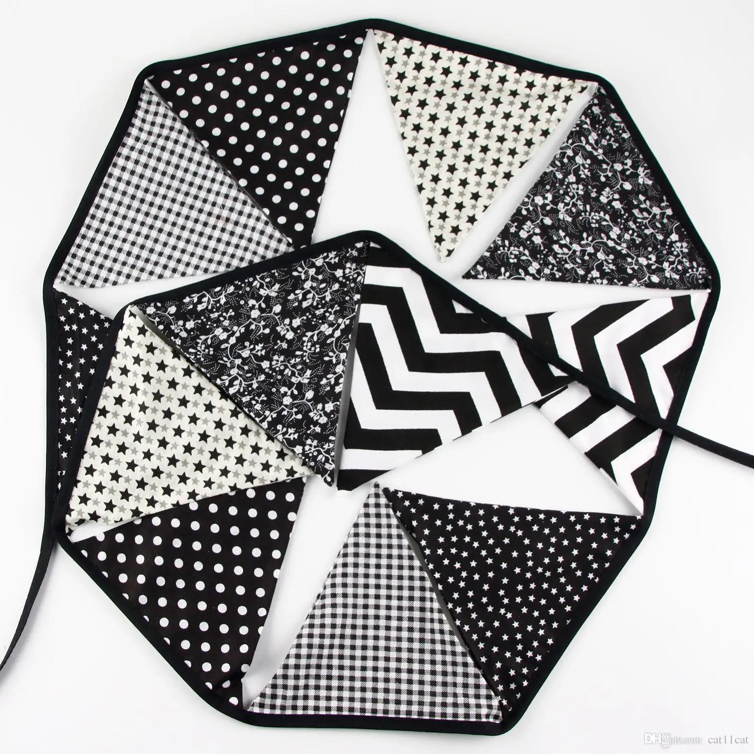 Ткань баннер Двусторонняя флаги гирлянды, 10,5 футов черные и белые флажки для свадебной вечеринки по случаю Дня Рождения детского дня рождения