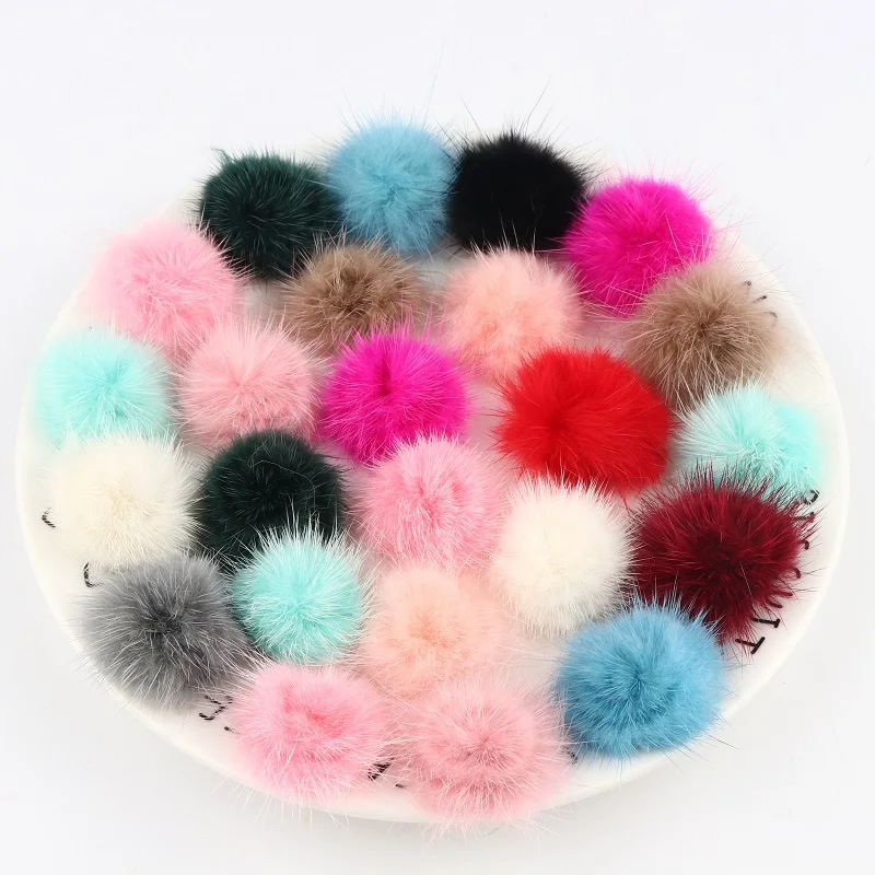 10 шт 3 см натуральный мех норки Помпон 30 мм мягкий красочный модный помпон из меха норки для одежды, платье, сделай сам, товары для рукоделия