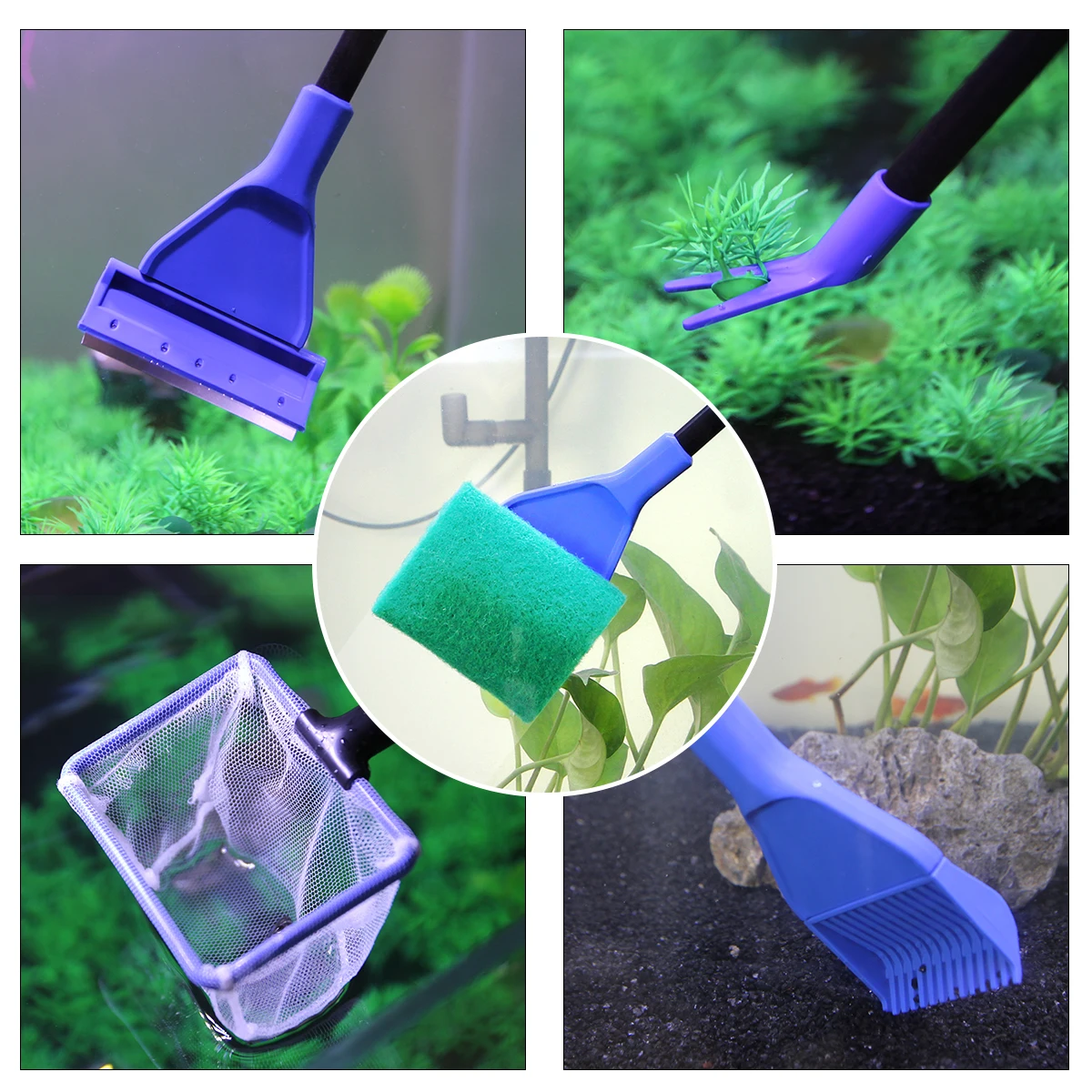 5 в 1, набор инструментов для очистки аквариума, 4 в 1, портативная ложка для аквариума, гравия, грабли для растений, вилка, скребок для водорослей, набор губок для очистки