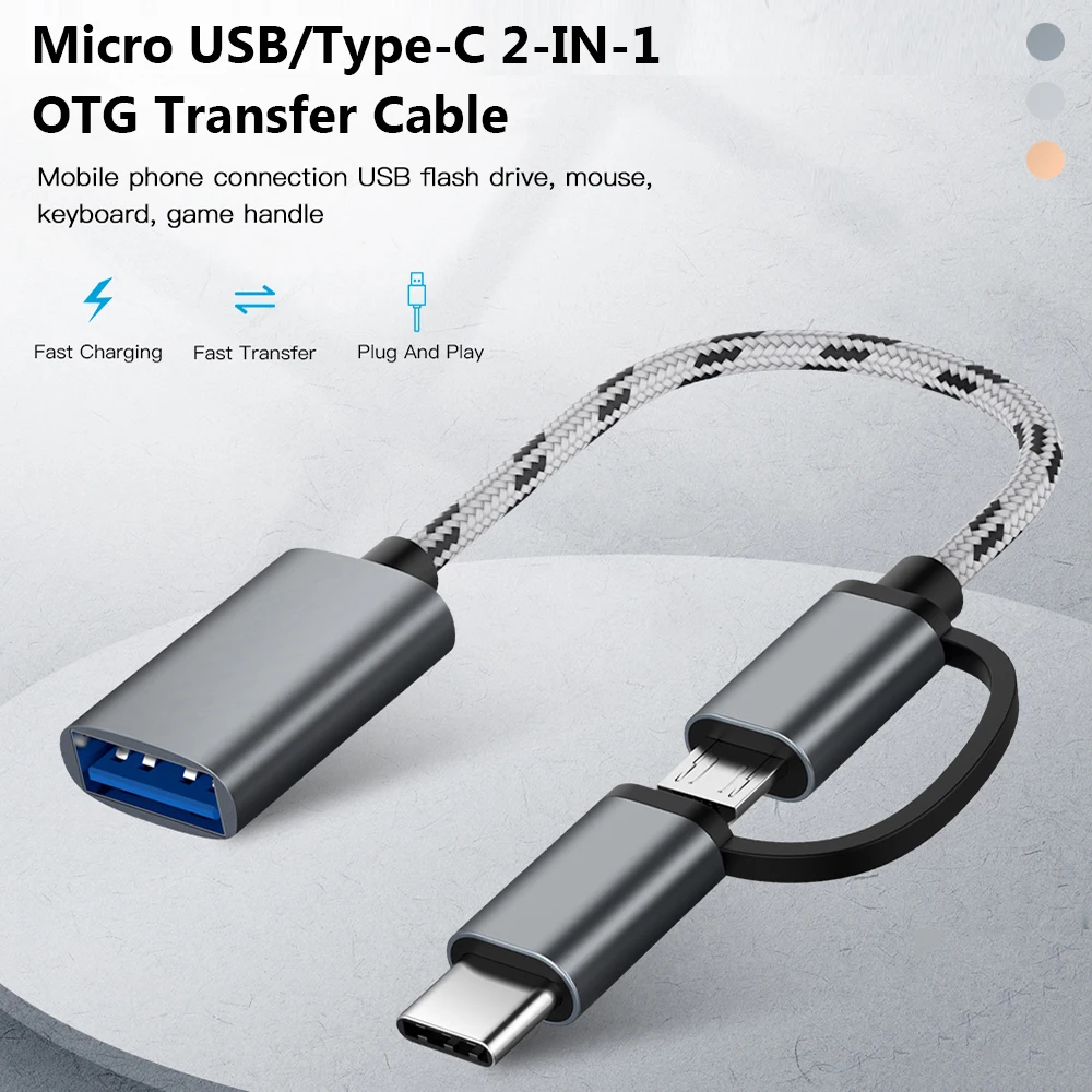 2 в 1 Type-C Male Micro USB Male To USB 3,0 Female OTG Кабель-адаптер нейлоновая оплетка шнур для передачи данных для телефона планшета U Disk аксессуары