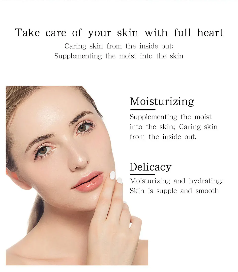 Заботьтесь о своей коже с полным сердцем Уход за кожей с изнанки; дополнение увлажнения в кожу Увлажнение Увлажнение кожи; уход за кожей изнутри; Деликатес Увлажнение и увлажнение; кожа мягкая и гладкая Украшать Водянистая и блестящая нежная кожа с хорошим видом на каждый день Гладкость Кожа нежная и гладкая, улучшает сухость кожи
