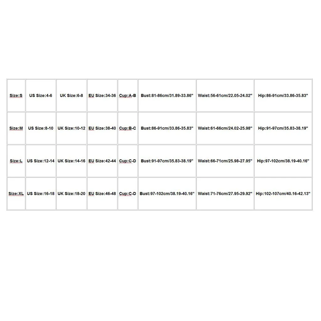 Размеры Нам Размеры UK Размеры ЕС Размеры Чашка Обхват груди Обхват талии Обхват бедер S 4-6 6-8 Большие размеры 34-36 A-B 81-86 см/31,89-33,86'' Окружности головы 56-61 см/22,05-24,02'' 86-91 см/33,86-35,83'' М 8-10 10-12 Большие размеры 38-40 B-C 86-91 см/33,86-35,83'' 61-66 см/24,02-25,98'' 91-97 см/35,83-38,19'' L 12-14 лет 14-16 42-44 C-D 91-97 см/35,83-38,19'' 66-71 см/25,98-27,95'' 97-102 см/38,19-40,16'' XL 16-18 18-20 46-48 C-D 97-102 см/38,19-40,16'' 71-76 см/27,95-29,92'' 102-107 см/40,16-42,13''