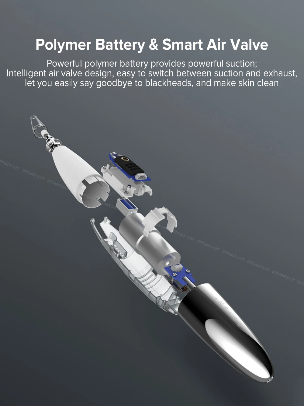 Мощный полимерный аккумулятор обеспечивает Мощное всасывание; Интеллектуальный дизайн воздушного клапана, легко переключается между всасыванием и выхлопом, позволяет легко попрощаться против черных точек и сделать кожу чистой
