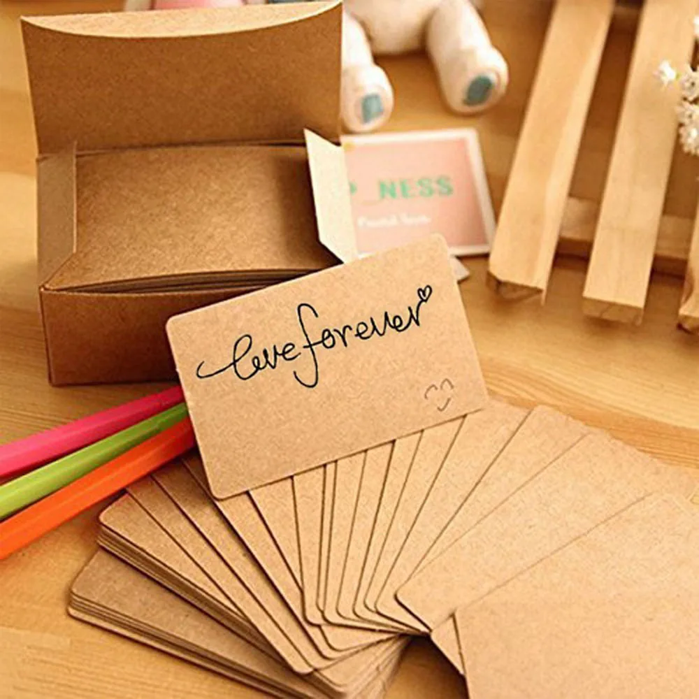 100 шт., портативные визитные карточки, пустые сообщения, заметки, карточки для сообщений, крафт-бумага, закладки в коробке, Обучающие заметки, офисные школьные принадлежности
