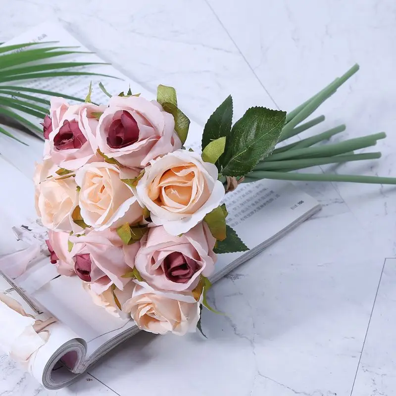 1 букет, украшенное мозаикой из драгоценных камней, 12 головок розы, с яркими цветами и в реальном сенсорный текстуру.