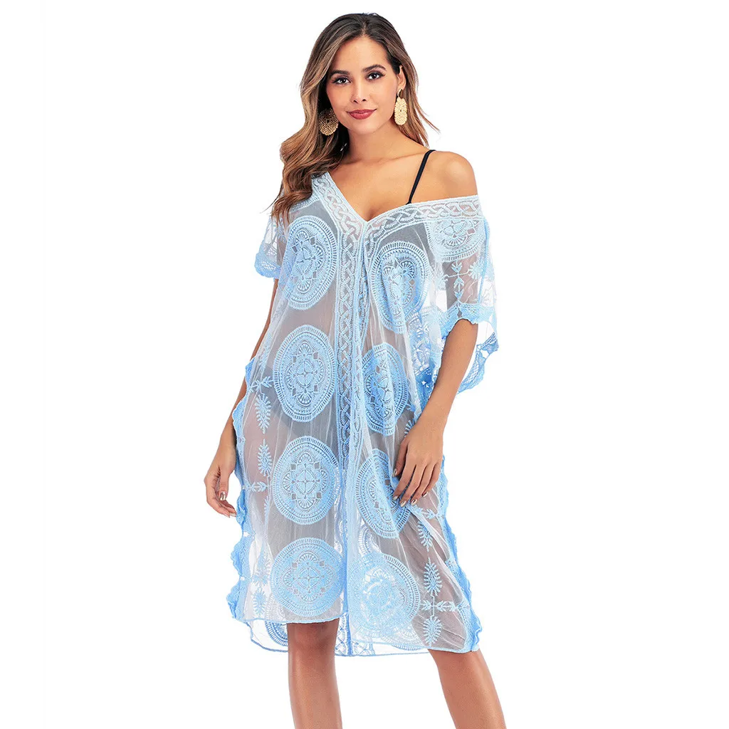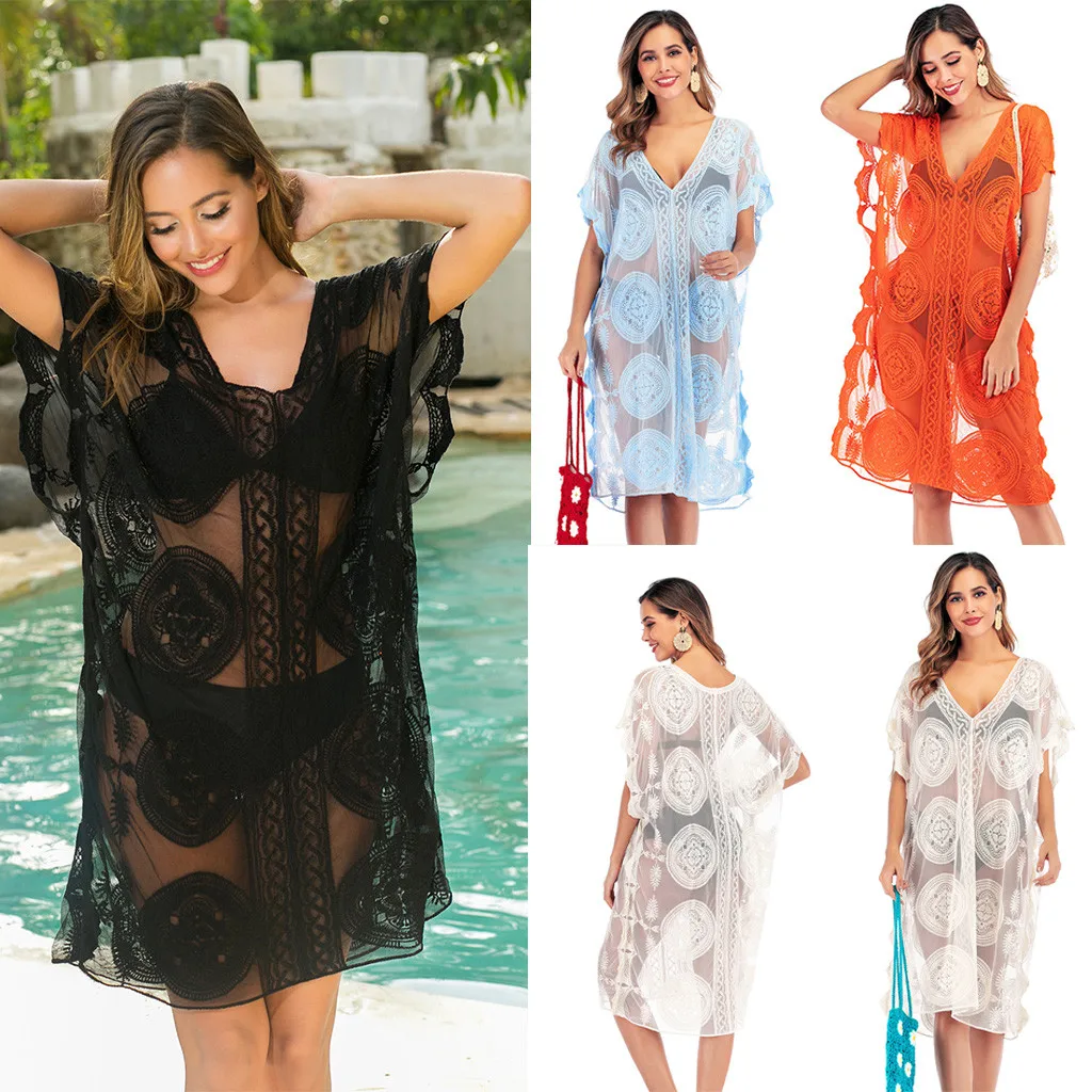 Женское пляжное платье, купальник, женское парео, сетчатая пляжная одежда, праздничное бикини, накидка, летняя пляжная туника, модное свободное платье для плавания