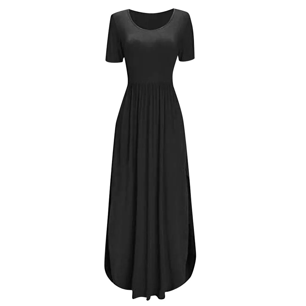3.КруглыйШея,КороткийРукав,БотильоныДлина,Застежка, плиссированный подол, боковая часть, асимметричный подол.Повседневный и свободный, однотонный, легко одевается.