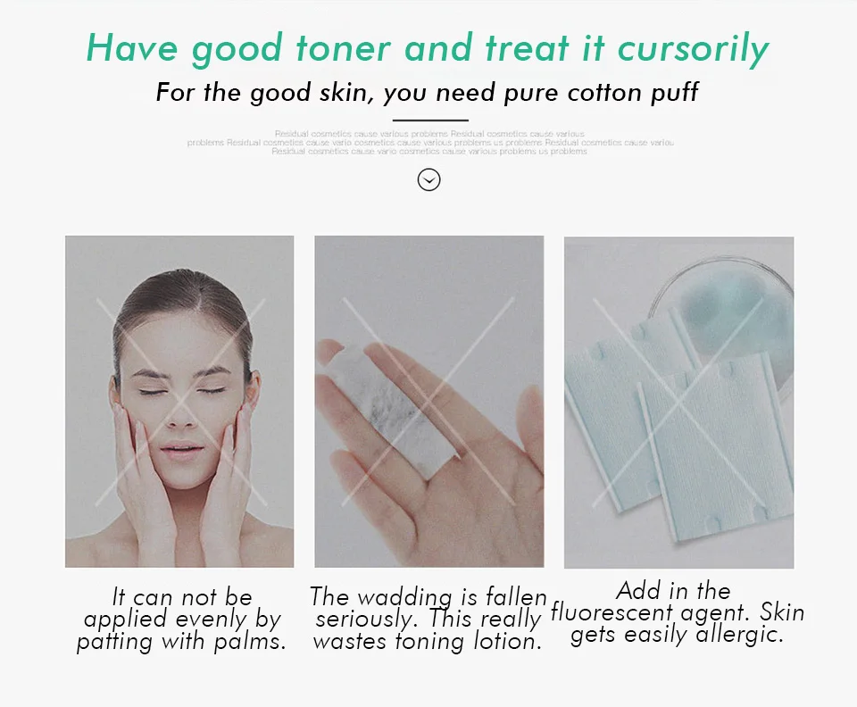 Иметь хороший тонер и обрабатывать его cursorily Для хорошей кожи, вам нужен Чистый хлопок. Его нельзя наносить равномерно, похлопывая ладонями. Вата серьезно падает. Это действительно теряет тонизирующий лосьон. Добавьте флуоресцентный агент. Кожа вызывает аллергию.