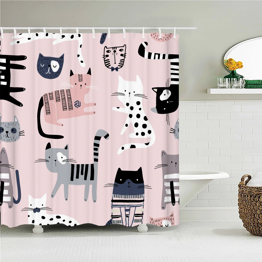 Занавески для душа с принтом кота, Мультяшные животные, занавески для ванной, ванная комната для ванной, купальный чехол, занавески для душа с 12 крючками