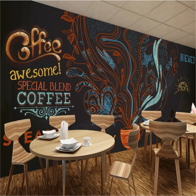 European and American Retro Coffee Labels Background Wall Paper 3D Coffee Break Restaurant Cafe Industrial Decor Mural Wallpaper
