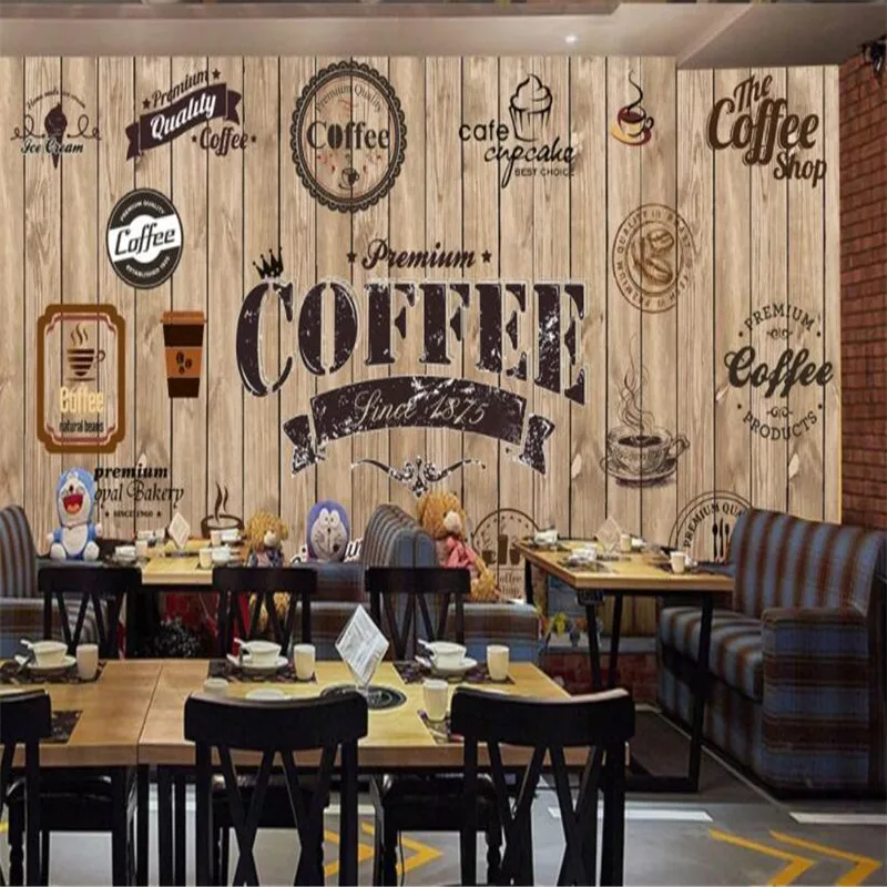 European and American Retro Hand Painted Coffee Shop Wooden Board Background Mural Wallpaper 3D Casual Restaurants Wall Paper 3D