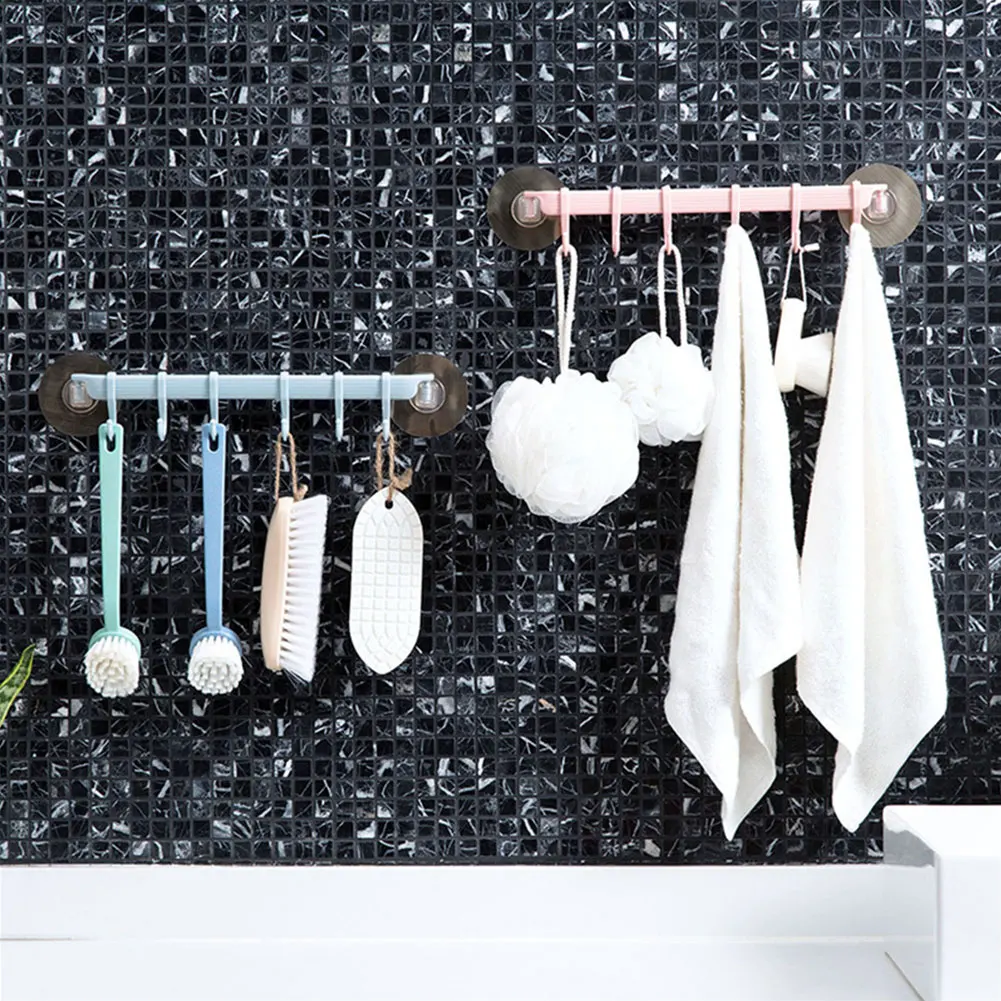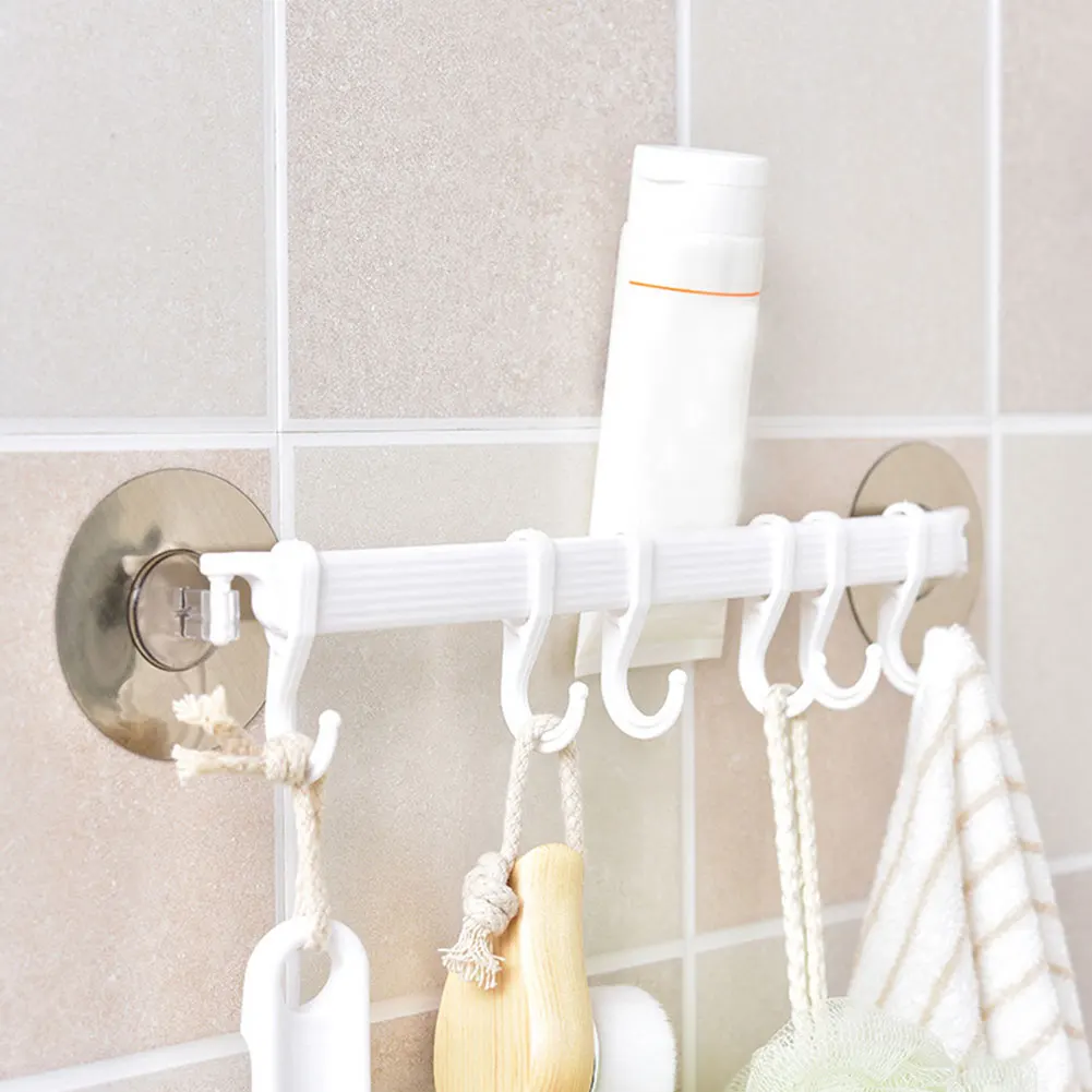 Summary: PP hook, durable, PVC adhesive, strong adsorption, practical 6 hooks, large capacity storage, with 6 movable hooks, installed on walls, corners, etc., hanging towels, bath balls, etc. It can be used in both the kitchen and the bathroom.
