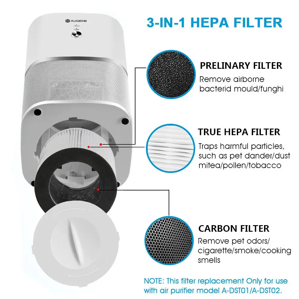 Фильтр AUGIENB HEPAЗамена -- для уменьшения плесени запаха дыма аллергии для AUGIENB Настольный очиститель воздуха модель A-DST01 и A-DST02