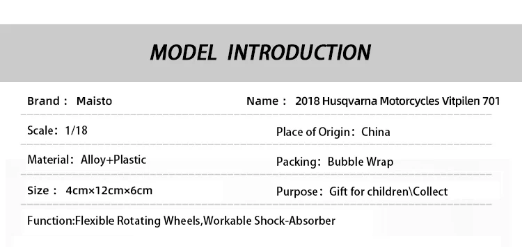 MAISTO 1:18 Husqvarna мотоциклы Vitpilen 701 сплав Литая модель мотоцикла работоспособный короткопоглотитель подарки коллекция игрушек
